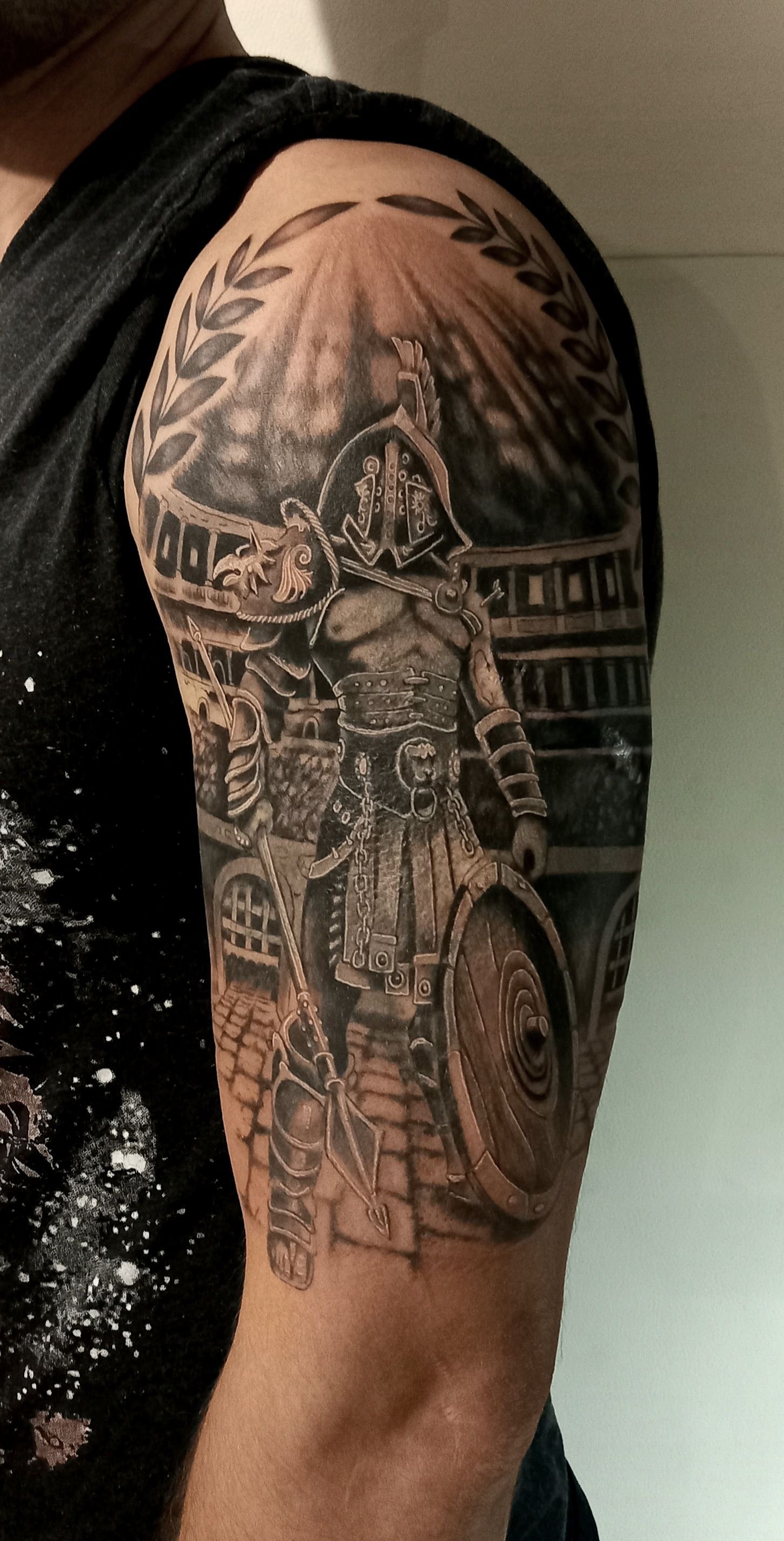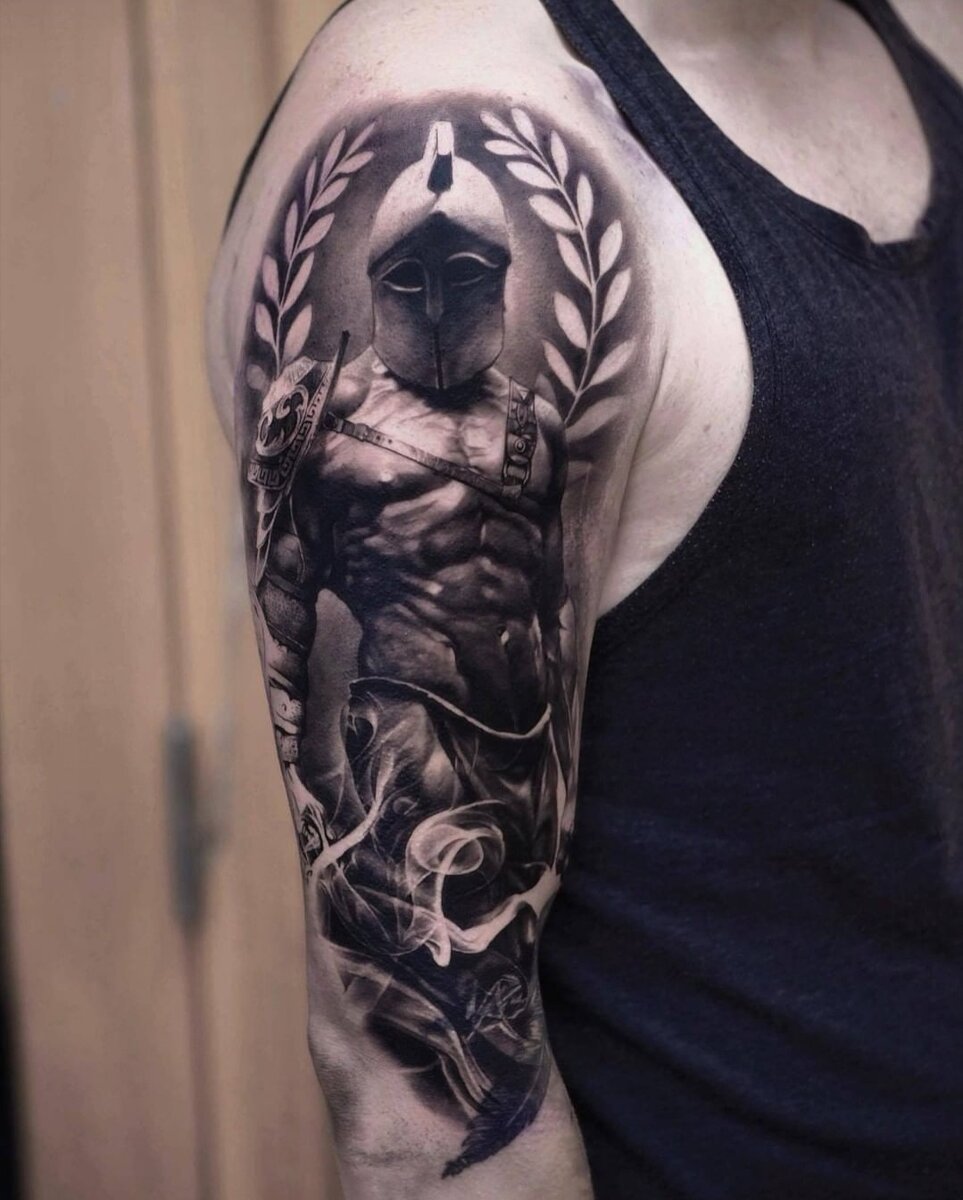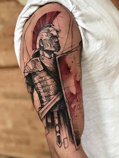 Die Wahl der Skizze "Spartan" für die Schulter, so will der Mann die starke Qualität des Bildes übernehmen und anderen sein Temperament zeigen.