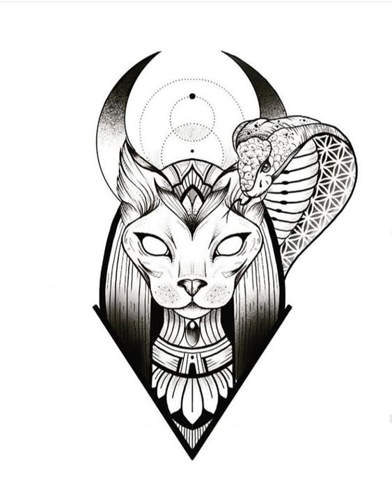 Auch, Tattoo-Skizzen der Sphinx (Katze/Katze), trägt einen starken Schutz. Ein solches Tattoo ist ein Amulett gegen die bösen Kräfte und Probleme des Lebens. Es gibt nur eine Einschränkung, das Tattoo muss an einer für Fremde unzugänglichen Stelle gefüllt werden, die leicht von Kleidung verdeckt werden kann. Es wird angenommen, dass der Amulett dann in voller Kraft wirkt.