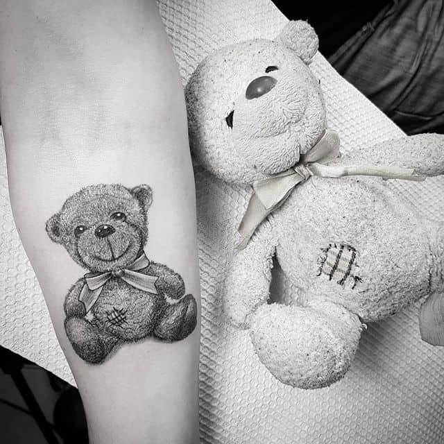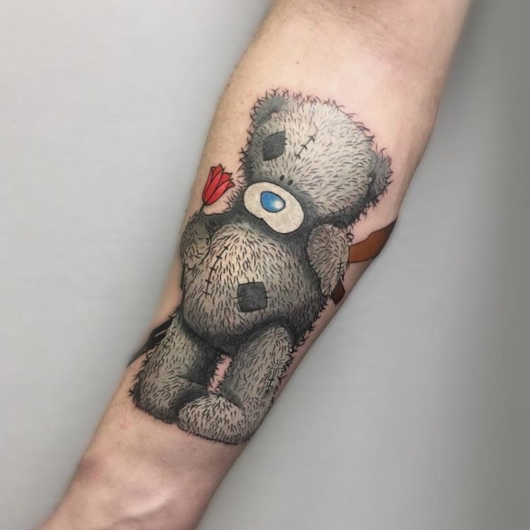 Beliebt ist unter anderem die Tätowierung eines Teddys. Der Teddybär ist die erste Wahl für Frauen; er steht für Romantik, Zärtlichkeit und eine gewisse Verletzlichkeit. Eine solche Person kann ein Kind mit ihren Lieblings-Cartoons und die Liebe zum Abenteuer bleiben. Andere Spielzeuge wie der Zauberwürfel zeigen perfekt die menschliche Intelligenz.