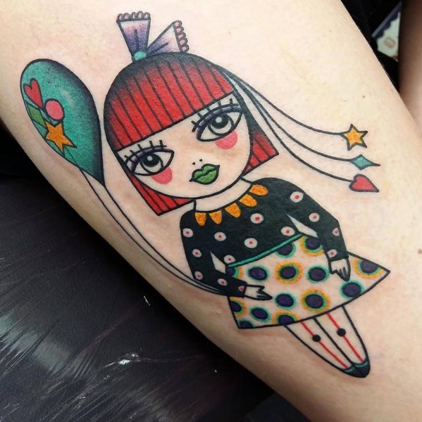 Die Arbeit kann in jedem Stil durchgeführt werden. Wenn es etwas Aggressives ist, dann wird der Stil angemessen sein. Wenn Sie eine romantische Arbeit wählen, wird der Stil der Tätowierung entsprechend ausgewählt werden, sowie die Farben und Hintergrund der Arbeit. Das Spielzeug-Tattoo kann mit anderen Details ergänzt werden, die es unkonventionell und originell machen. Dabei kann es sich um Figuren aus demselben Märchen oder aus einem anderen, völlig fremden Märchen handeln.