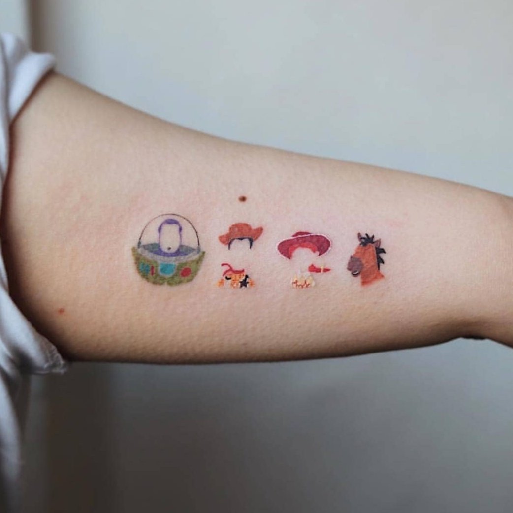 Die erste Kategorie von Tattoos sind also Spielzeug-Cartoonfiguren.