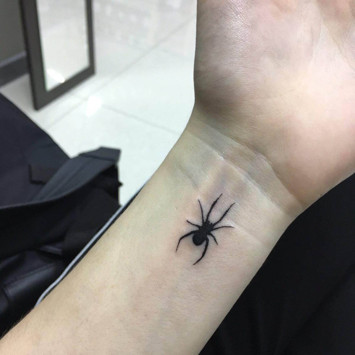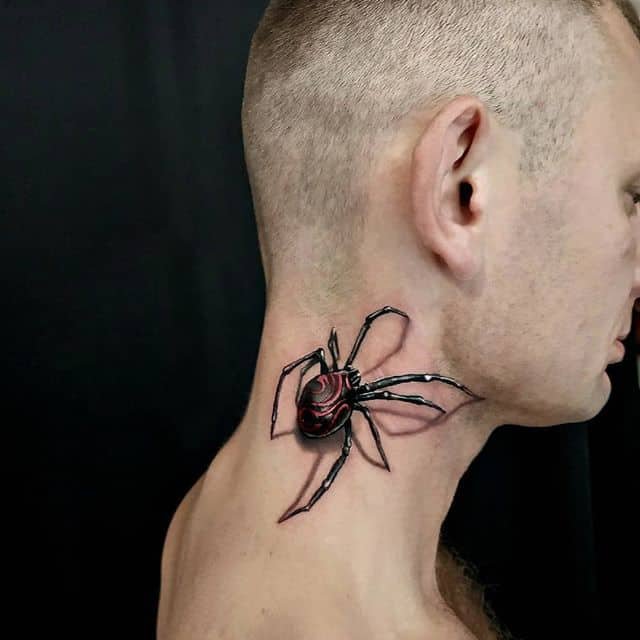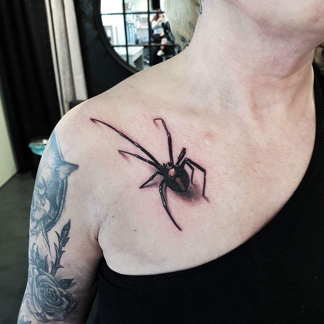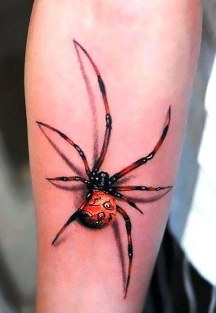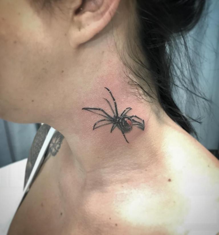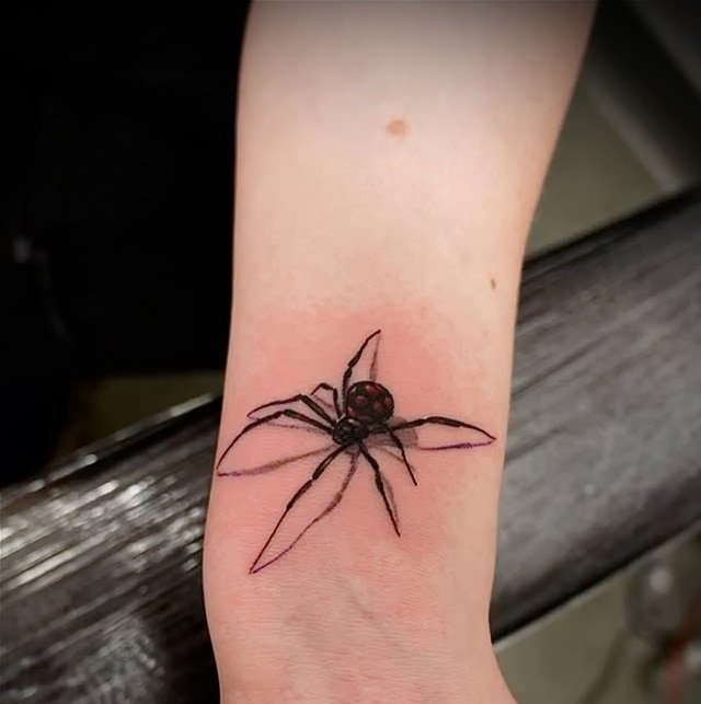 Auch die Farbe des Gliederfüßlers und sein Standort beeinflussen die Bezeichnung der Spinnentätowierung: