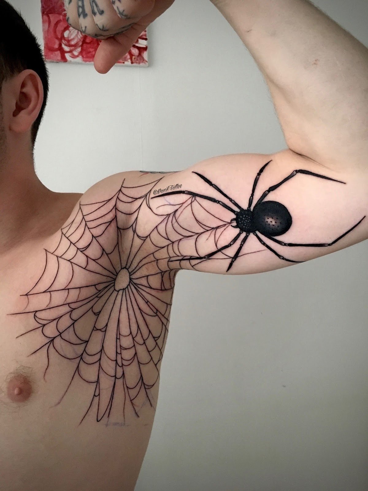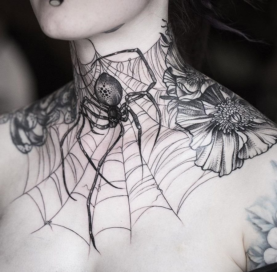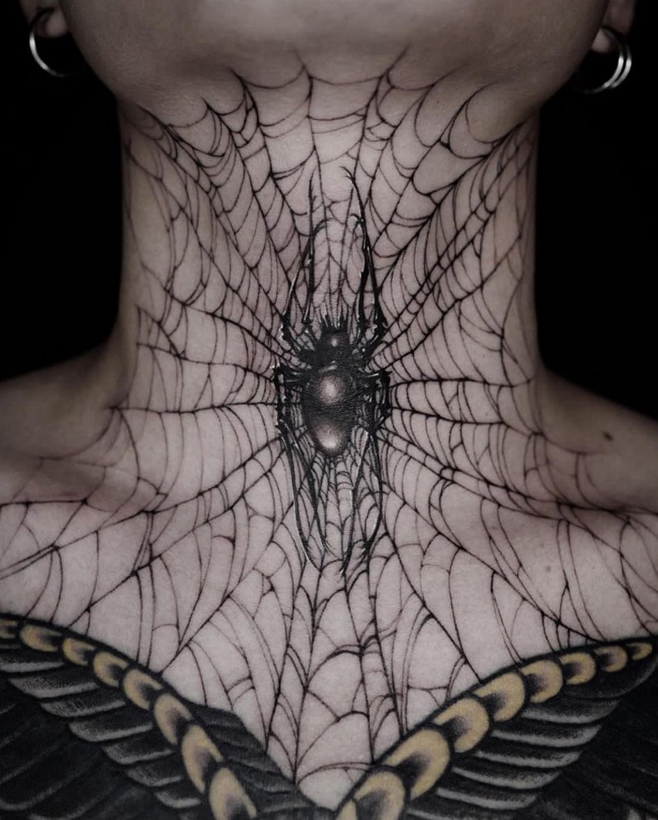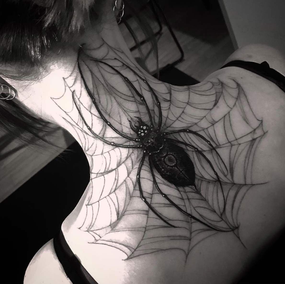 Es ist eher selten, dass Frauen sich für Spinnennetz-Motive entscheiden, da viele Frauen Spinnen nicht besonders mögen und oft Angst vor ihnen haben.