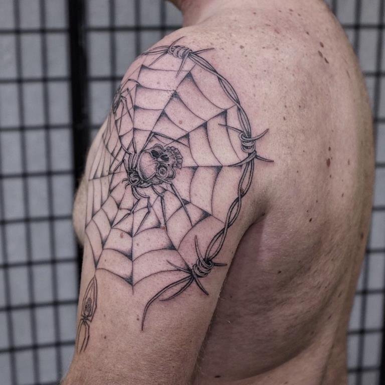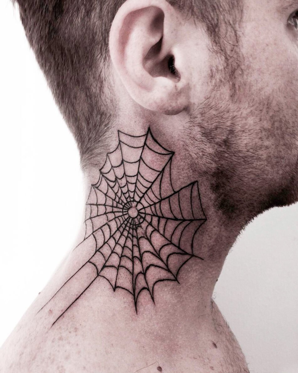 Viele Männer zeigen durch Spinnennetztätowierungen ihre Hingabe an ihre Leidenschaften, Prinzipien und Lebensüberzeugungen. Diese Tattoos stehen für ihre Zufriedenheit mit ihrem Lebensweg und ihre Entschlossenheit, diesen nicht zu ändern.