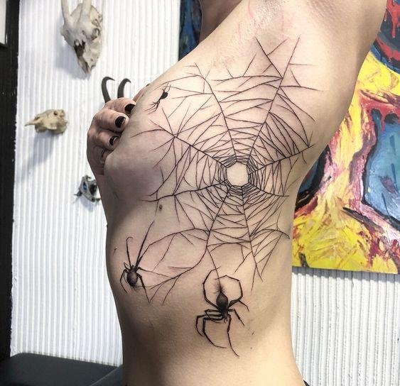 Trotzdem gibt es immer noch Frauen, die diese Art von Tätowierung mögen. Für sie symbolisiert das Spinnennetz-Tattoo Individualität und drückt Rebellion, Brutalität und die Liebe zur Freiheit aus.