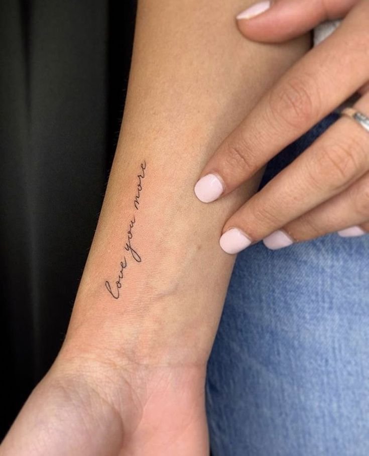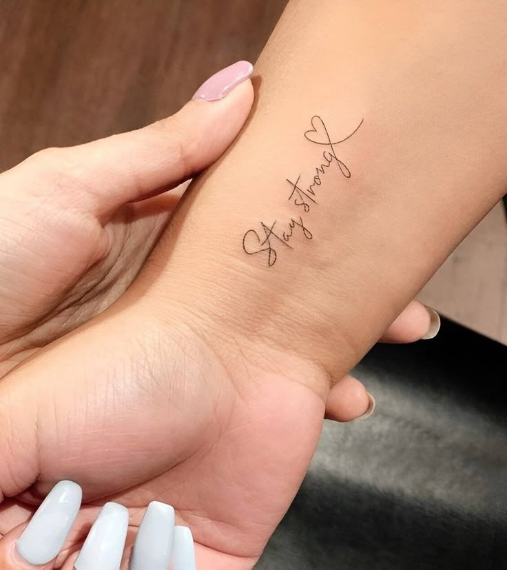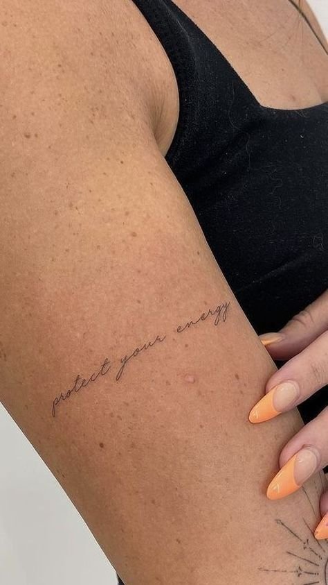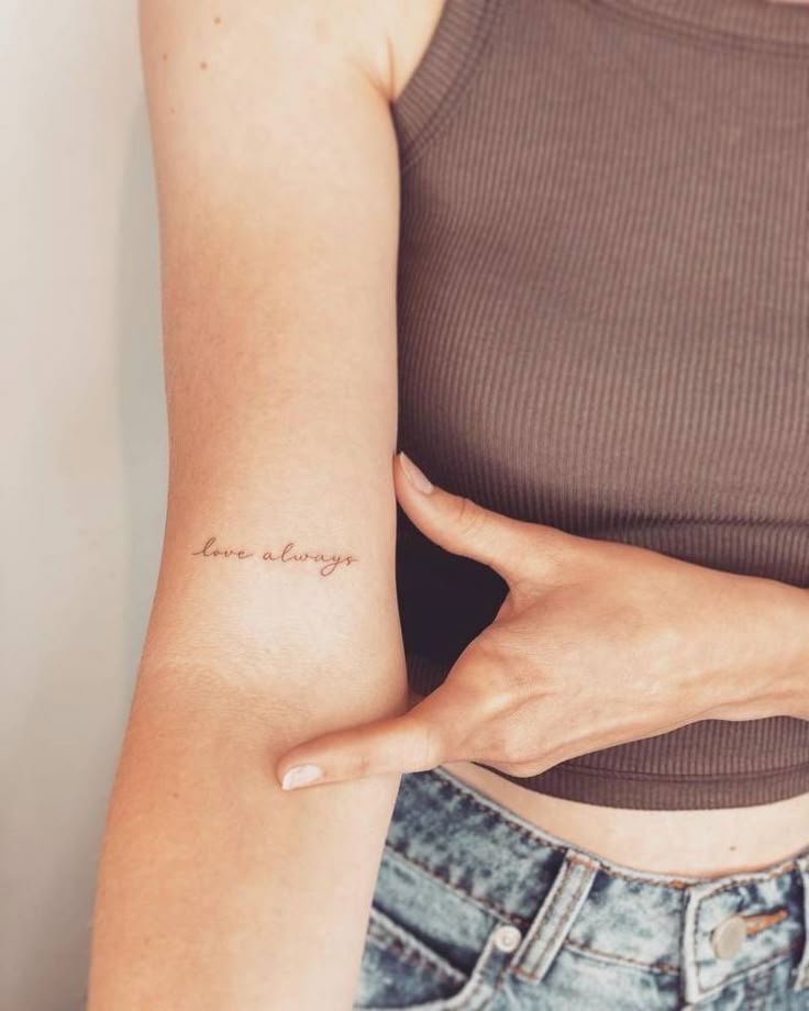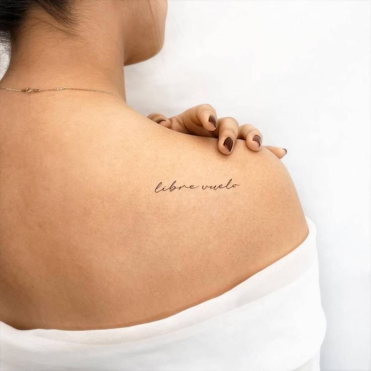 Viele Frauen entscheiden sich für ein Spruch-Tattoo, das leise, aber kraftvoll wirkt.