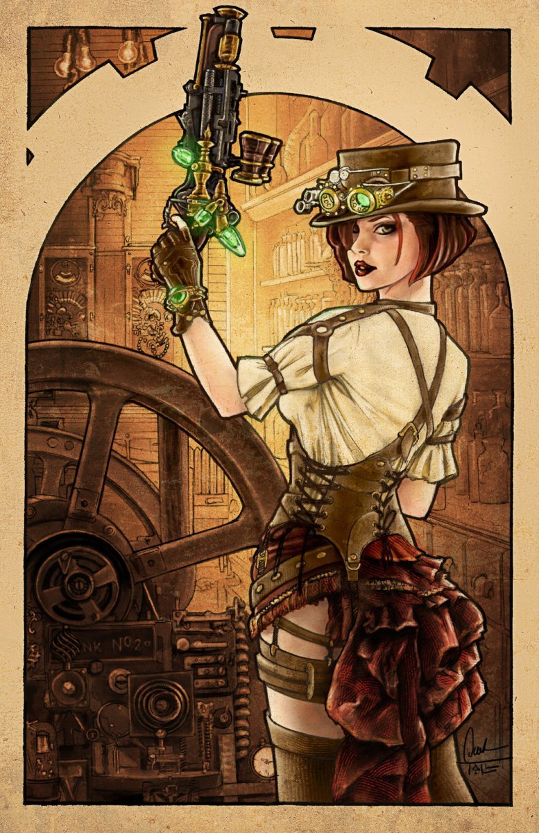 In Steampunk ist die Entwicklung der Menschheit mit ihrem Stopp in der viktorianischen Ära technisch gemischt. Es ist, als gäbe es nur noch klapprige Dorfhäuser, die Leute würden slawische Kleidung tragen, aber gleichzeitig würden sie mit Ferarri gefahren, im Café einchecken und Raketen ins All ablassen.