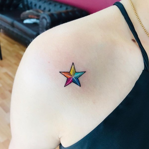 Das Bild eines Sterns oder eines Sternbildes kann mit einer Vielzahl von Farben gestaltet werden. Männer bevorzugen oft schwarz-weiße Sterne. Frauen hingegen neigen dazu, Sterne in einer breiten Palette von Farben zu wählen. Sterne-Tattoos sehen an jedem Körperteil schön aus. Männer bevorzugen oft Stellen wie Arme, Schultern, Nacken und gelegentlich Beine für ihre Sterne. Frauen hingegen können Sterne an jedem gewünschten Ort tragen, um ihre Weiblichkeit, Helligkeit und Sexualität zu betonen. Ein beliebtes Motiv bei Mädchen ist auch eine Streuung von Sternen, die vom Hals über den Rücken bis zur Hüfte reicht.