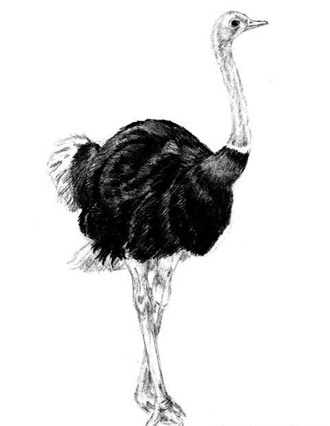 Zeichnungen, die einen Ostrich für Frauen darstellen, sind in der Regel klein, und verschiedene Elemente können in der Ergänzung des Bildes vorhanden sein.