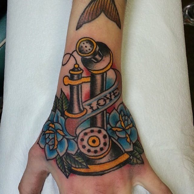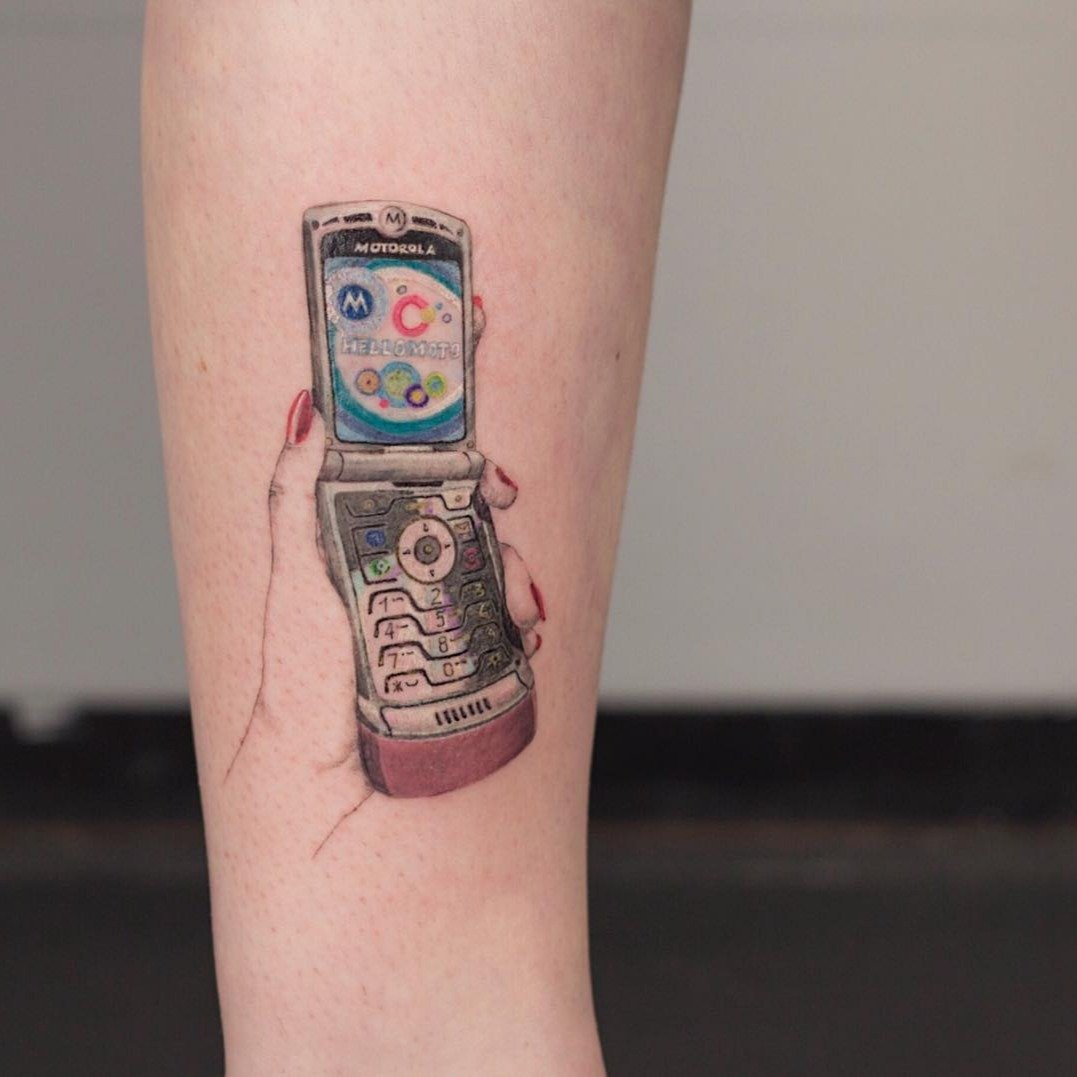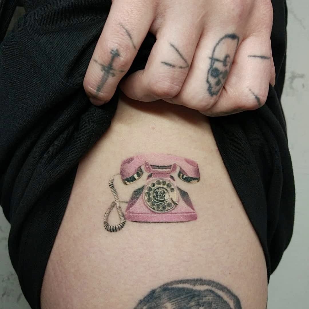 Das Tattoo des Telefons wird nicht oft von Tattoo-Meistern durchgeführt, findet aber in der modernen Welt statt.