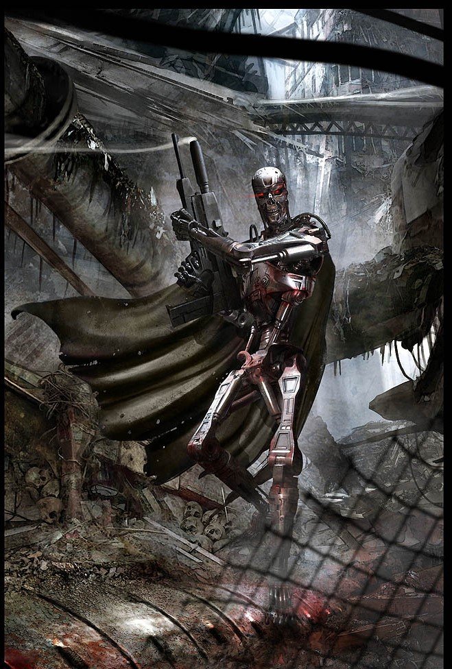 Der Terminator verbindet Mensch und Roboter und zeigt damit seine Kraft und Macht und kann auch eine Stütze im Leben sein.