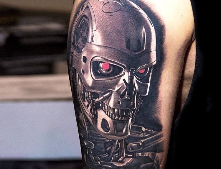 Der häufigste Stil für das Auftragen eines Terminator-Tattoos auf dem Körper ist Biomechanik. Dieser Stil zielt darauf ab, eine Cyborg-Tätowierung auf dem Körper als echte und Terminator Inkarnation eines lebenden und unbelebten Wesen zur gleichen Zeit zu schaffen.