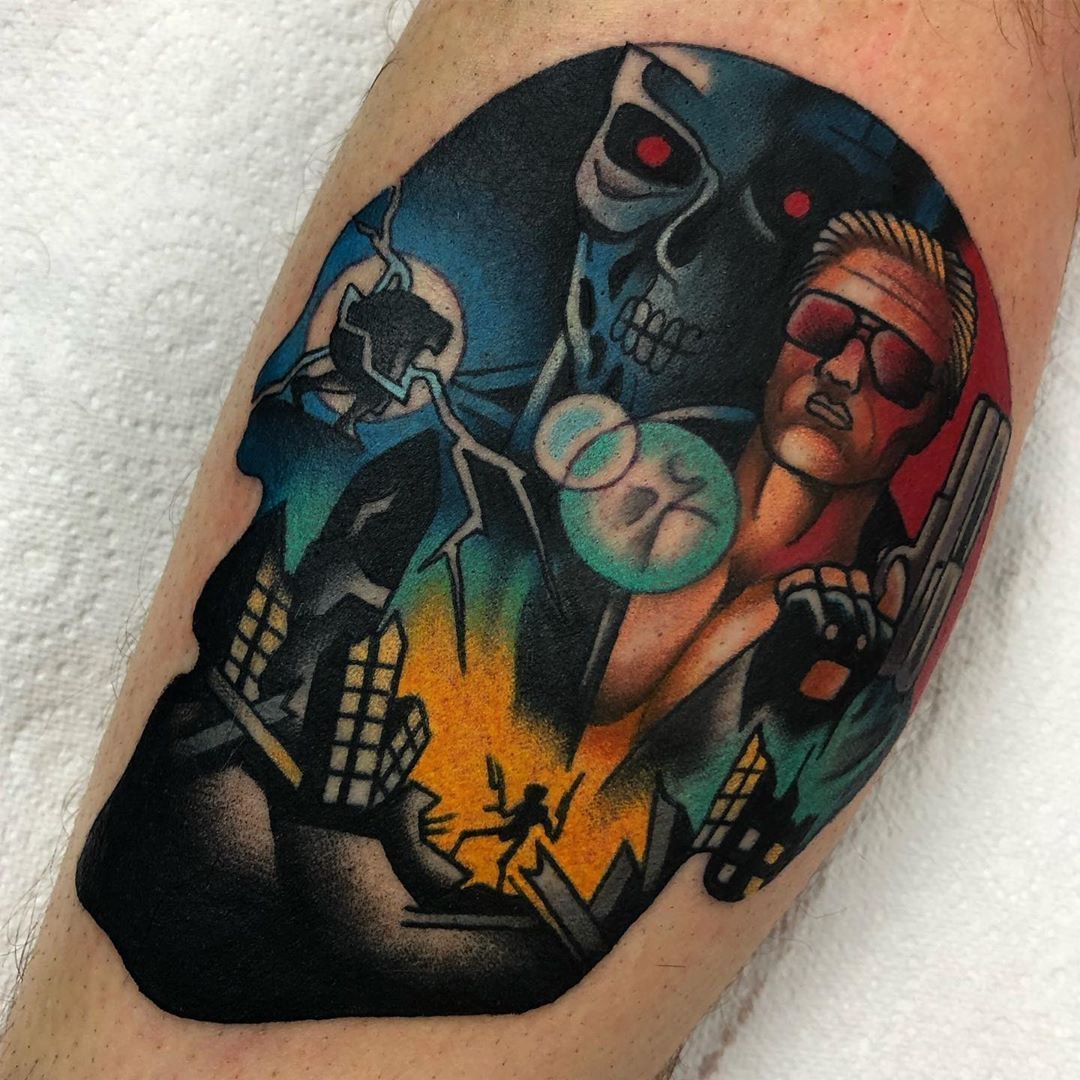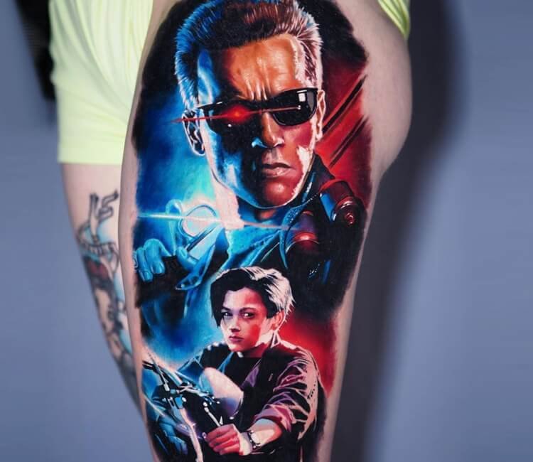 Der Zusatz der Tätowierung zeigt oft Explosionen und sogar Blutspritzer, sowie der Held wird oft durch eine schwarze Brille und eine Lederjacke ergänzt. Die beliebteste Tätowierung zeigt den Terminator auf einem Motorrad, wie er in der Handlung des Films vorkommt.