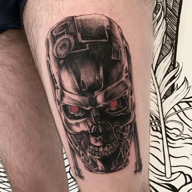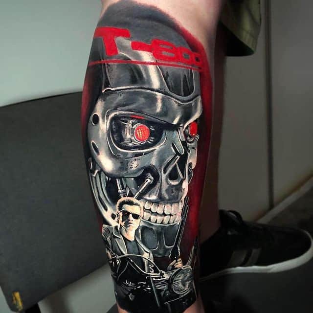 Die Terminator-Tätowierung benötigt viel Platz auf dem Körper, da es sich meist um großformatige Gemälde mit begleitenden Elementen handelt, die die Macht dieses Cyborgs in voller Pracht darstellen.