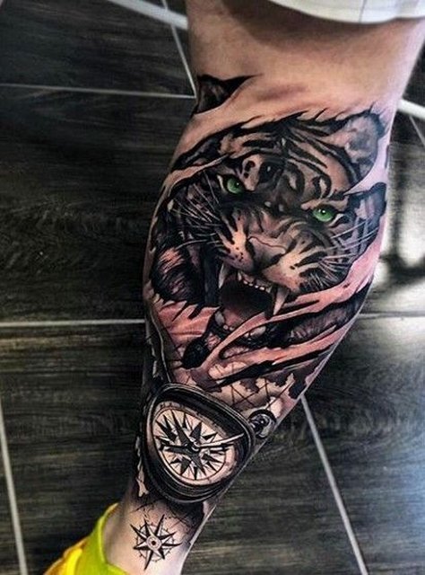 Die Bezeichnung der Tätowierung wird auch durch die Anzahl der hellen und dunklen Streifen auf dem Körper des Tigers beeinflusst. Helle Streifen stehen für Sonnenschein und sind ein Zeichen für Weisheit und Leidenschaft. Dunklere Farben stehen für Dunkelheit und sind ein Zeichen für Brutalität und Rücksichtslosigkeit. Je nachdem, welche Streifen mehr auf dem Bild des Tigers zu sehen sind, kann man verstehen, welche Seite beim Besitzer des Tattoos dominiert - die dunkle oder die helle Seite.