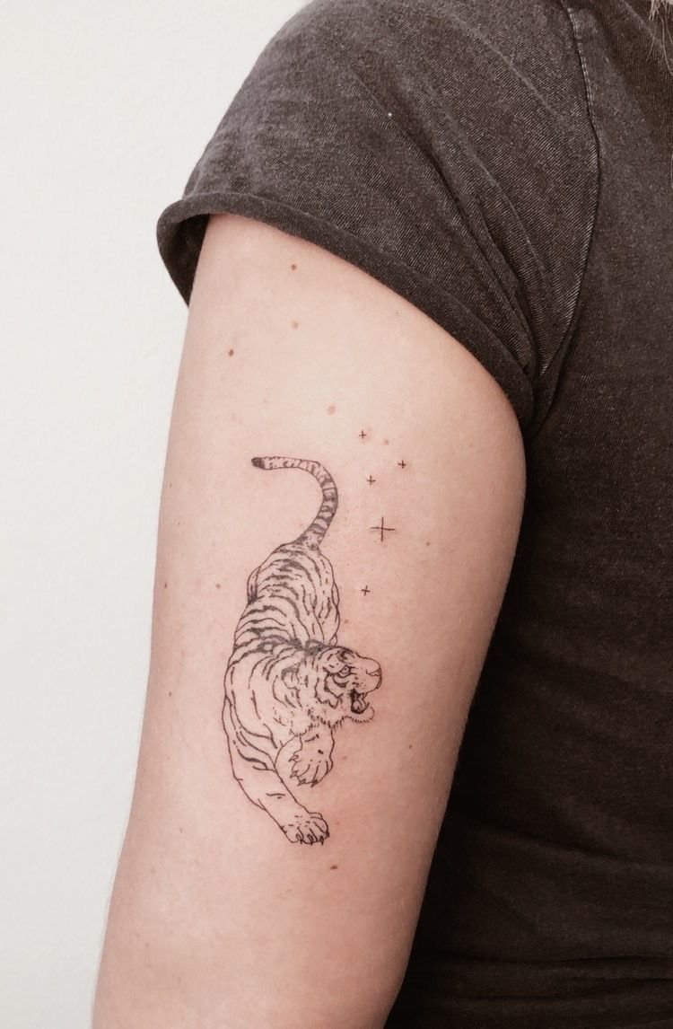 Es ist kein Wunder, dass dieses majestätische Raubtier in der Welt der Tätowierungen so beliebt ist. Auf den ersten Blick mag es scheinen, dass ein Tiger-Tattoo eher in die Kategorie der männlichen Tätowierungen fällt, aber das ist keineswegs der Fall. Auch Frauen schmücken ihren Körper gerne mit dem Bild dieses faszinierenden Tieres. Die Bedeutung eines Tiger-Tattoos in der Tattoo-Welt ist vielfältig und schwer zu definieren, da diese Zeichnung verschiedene Interpretationen zulässt. Ein Tiger steht symbolisch für Macht, Stärke, Würde, Zorn, Schönheit, Leidenschaft und Grausamkeit.