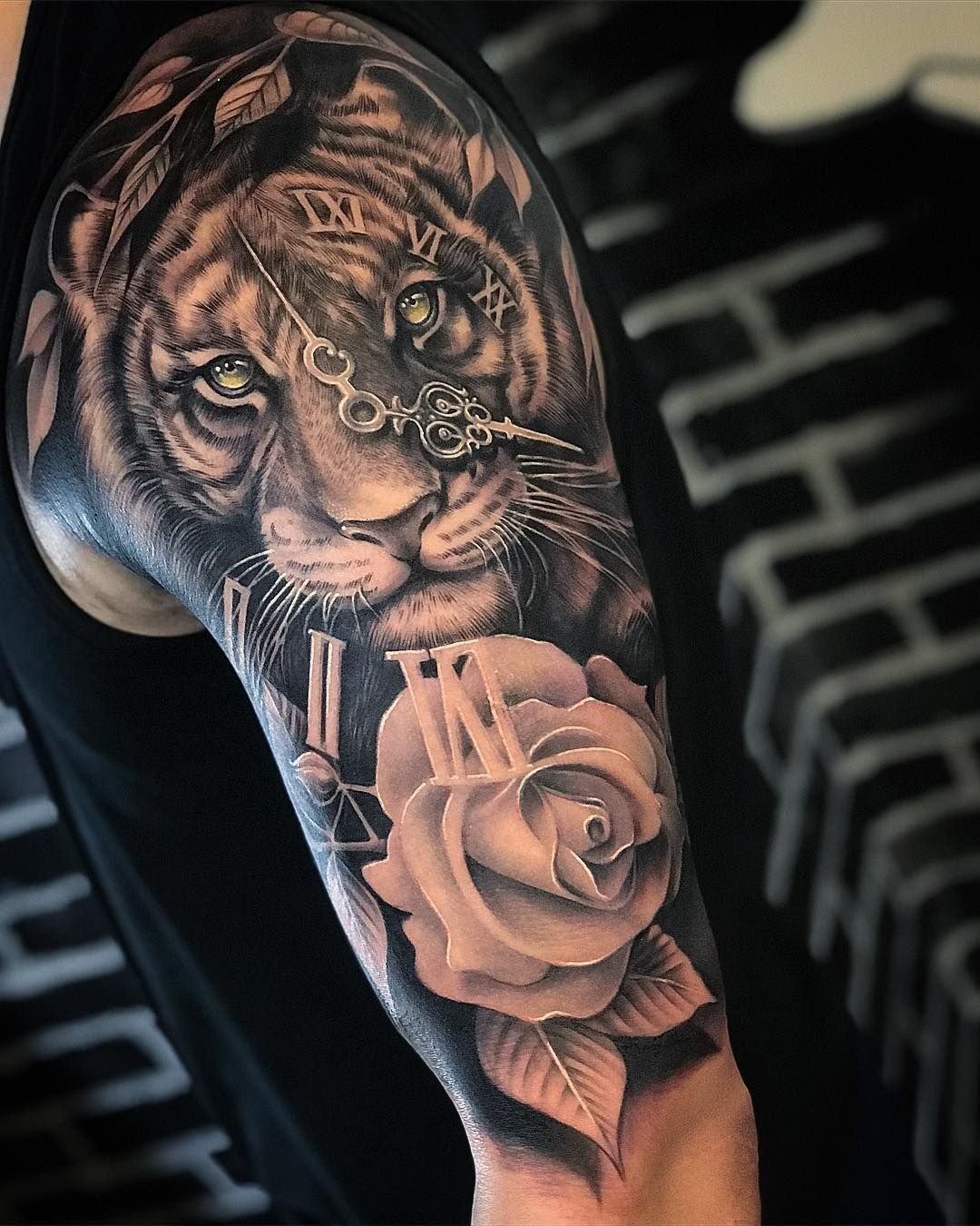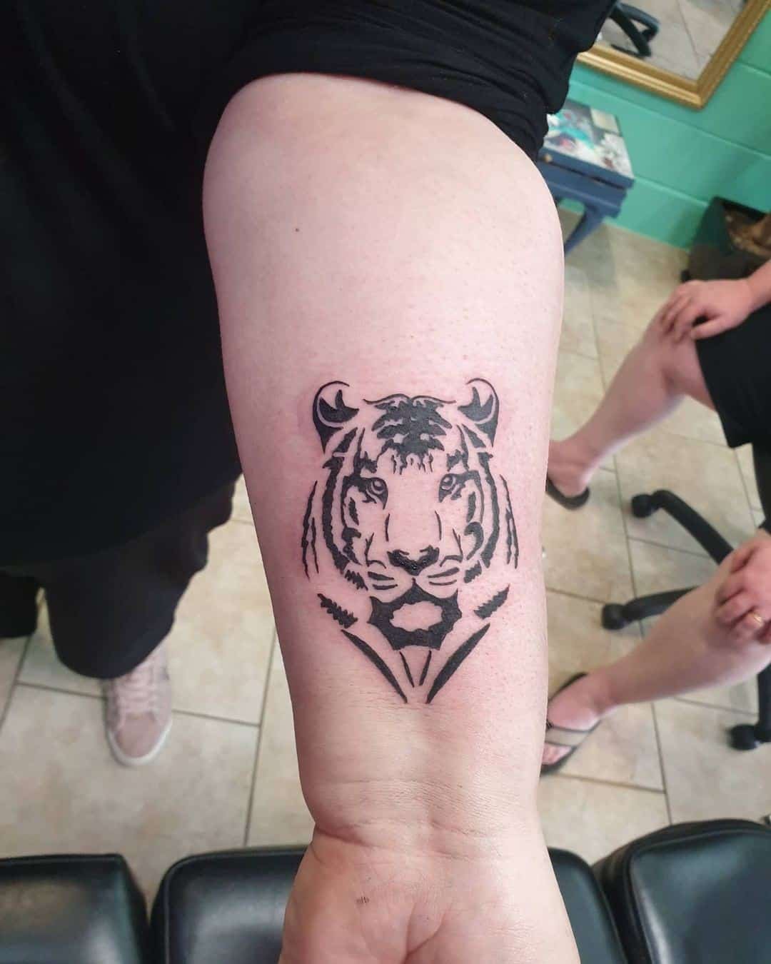 Das Tiger-Tattoo trägt mehrere Interpretationen, alles hängt von den zusätzlichen Elementen ab, mit denen das Raubtier dargestellt wird, von seiner Art sowie von der Kultur des Volkes.