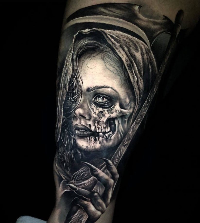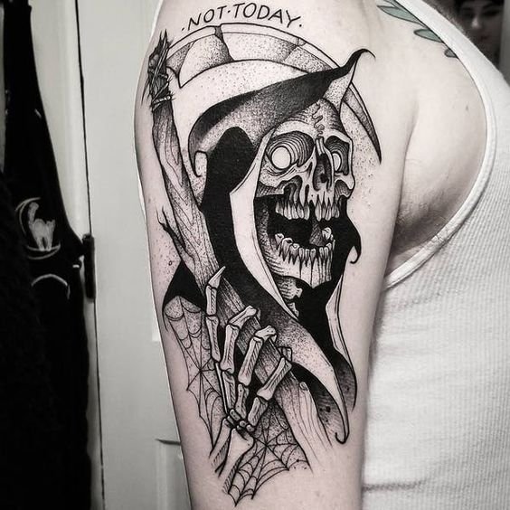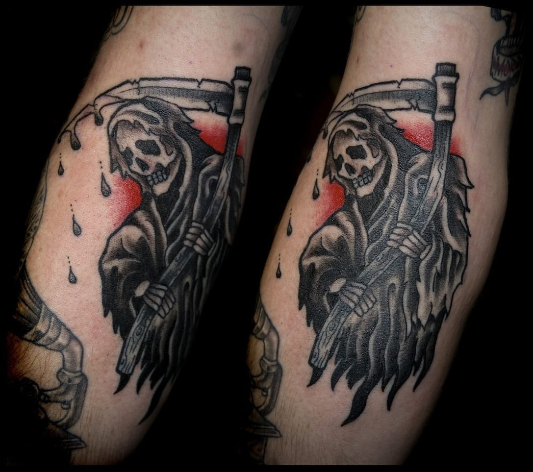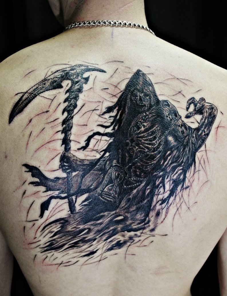 - Wenn das Tattoo des Sensenmann es mit einer Sense Sie erschreckt, dann ist dieses Tattoo eindeutig nicht für Sie, wenn es nicht um ein Comic-humorvolles Bild geht.