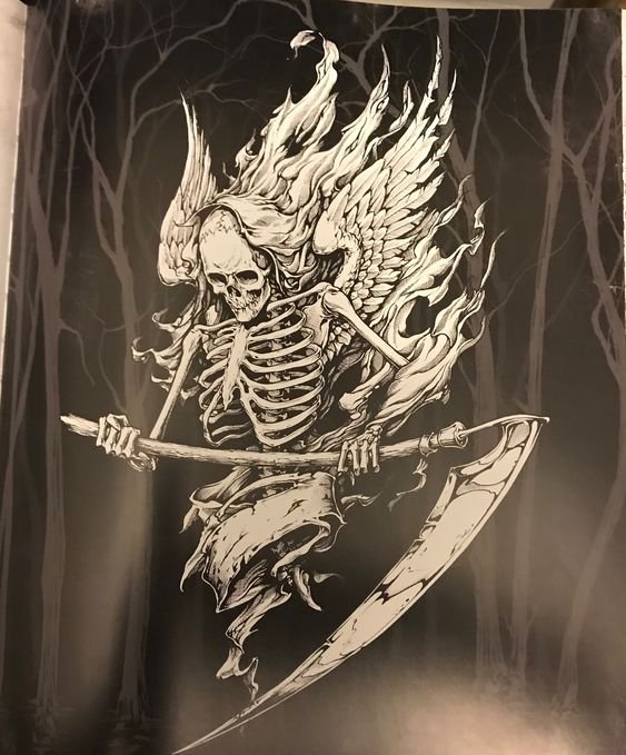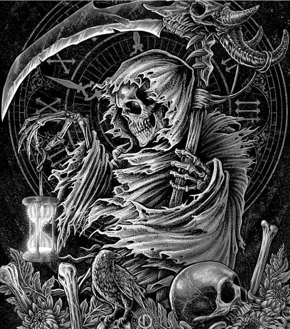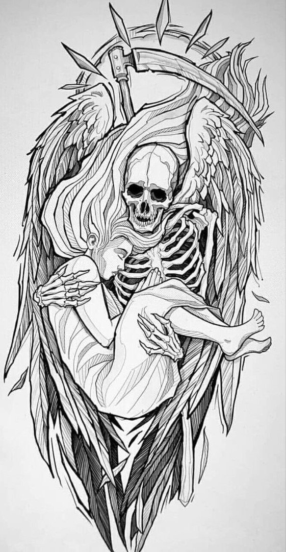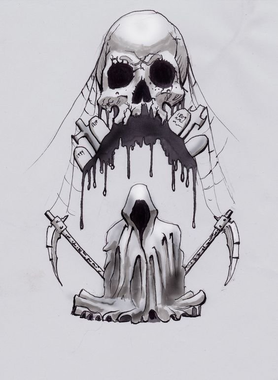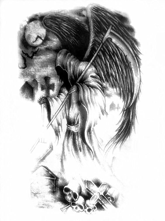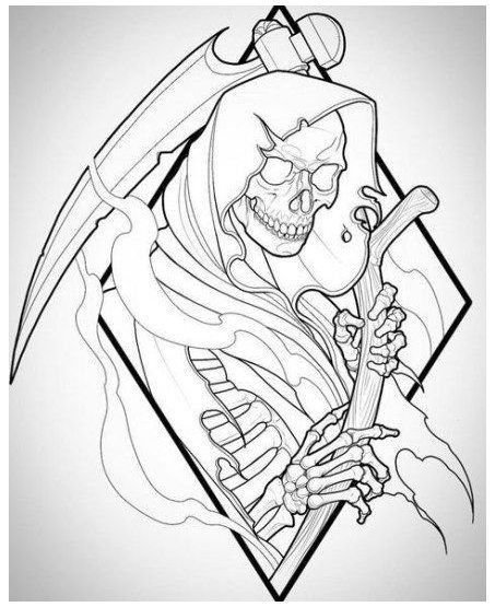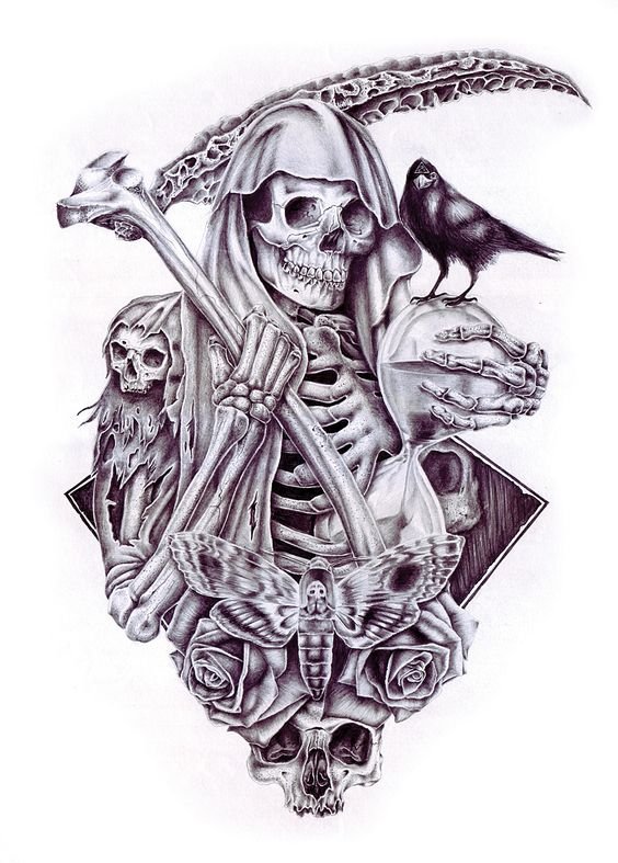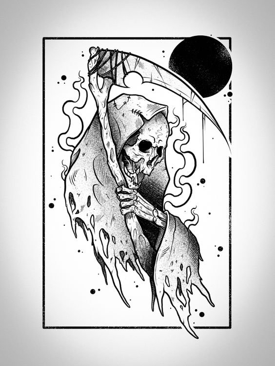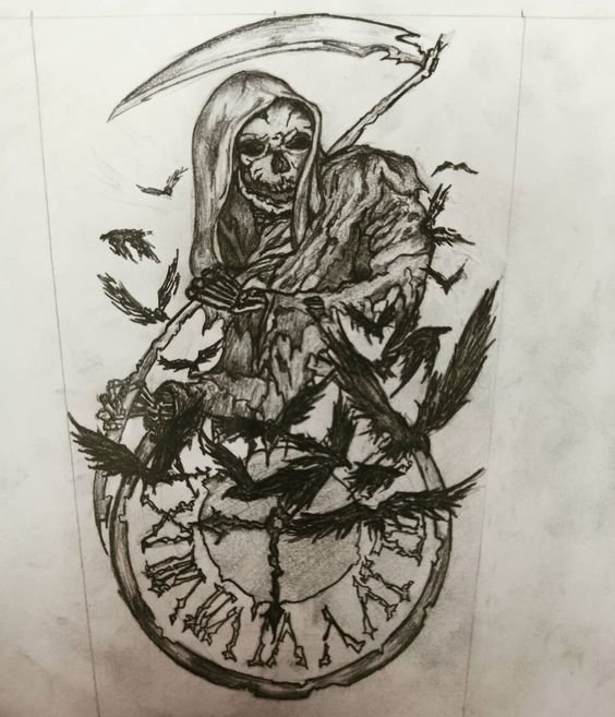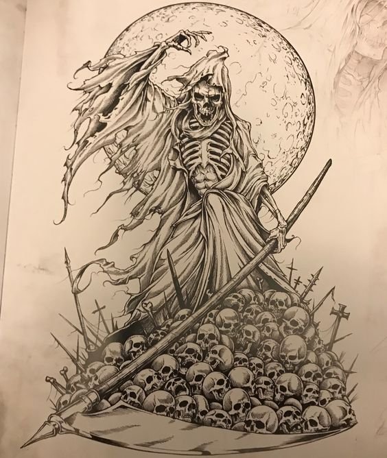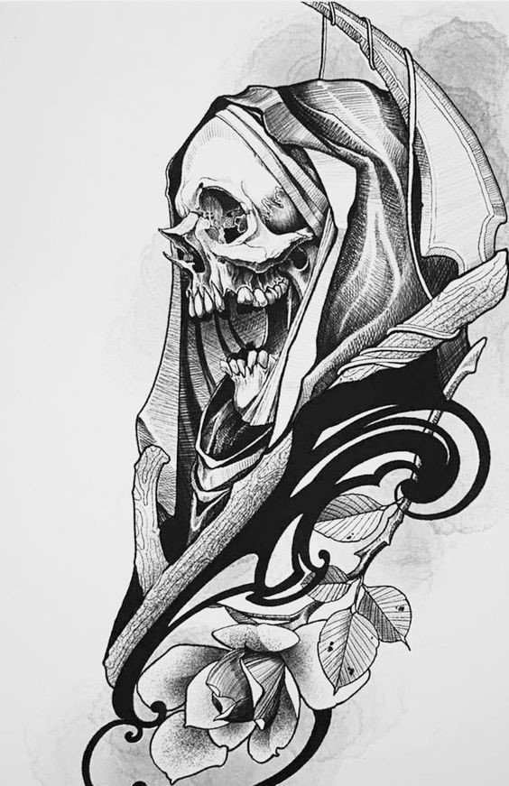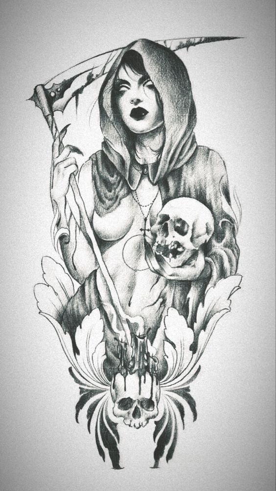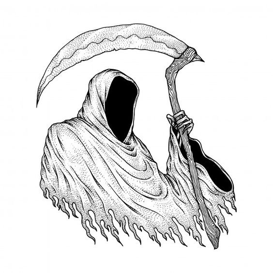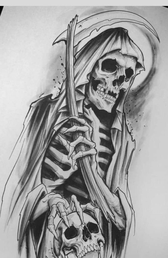 Im Bereich der künstlerischen Tätowierung sind Sensenmann -Skizze sehr gefragt.