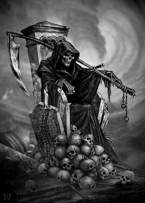 Wissen Sie, warum der Sensenmann auf Zeichnungen mit einer Sense und in einem schwarzen Gewand dargestellt wird?
