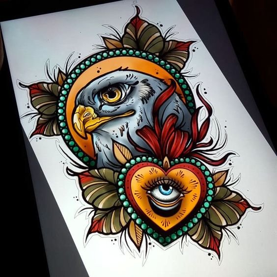 Die Traditional Tattoo-Technik ist ideal für optimistische Menschen, die die Welt und ihre Umgebung mit Freude betrachten. Mittelgroße Traditional Tattoos kommen besonders an Schultern, dem Rücken oder den Rippen wunderschön zur Geltung.