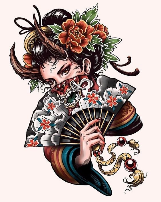 Abgesehen von den amerikanischen und europäischen Stilen gibt es auch das traditionelle japanische Tattoo. Im Gegensatz zu den westlichen Varianten hat diese Art der Tätowierung eine tiefere Symbolik im Bild. Jedes Element und jede Farbe haben eine spezielle Bedeutung. Zum Beispiel steht ein Eichhörnchen für Reichtum und Wohlstand, eine Ratte für Fruchtbarkeit und ein Löwe für Macht und Schutz. Die Komposition kann den sozialen Status einer Person anzeigen, als Symbol für ewige Liebe dienen oder als Ansporn dienen, einen Traum zu verwirklichen. Es ist erwähnenswert, dass traditionelle japanische Tattoos nicht klein sind. Normalerweise erstrecken sie sich über die Hälfte des Körpers und werden manchmal in Form eines authentischen Anzugs gestaltet. Diese Variante eignet sich für diejenigen, die mutige Experimente mögen und keine Angst davor haben, sich von der Masse abzuheben.