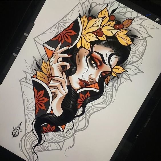 Bündigkeit, Einfachheit und schlichte Handlungen zeichnen diesen Stil positiv unter den neu entwickelten Techniken aus. Wenn Sie die Klassiker schätzen und viel über die Tattoo-Kunst wissen, dann ist Traditional eine gute Auswahl für Sie.