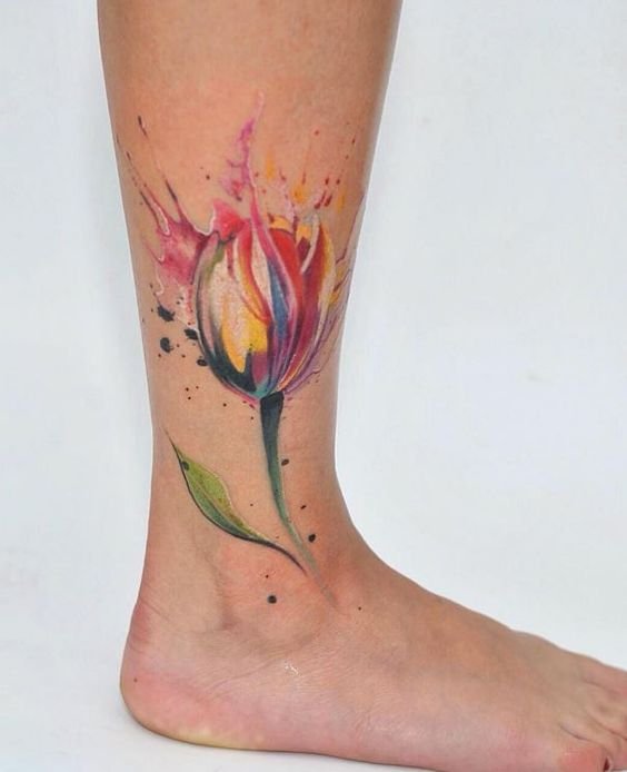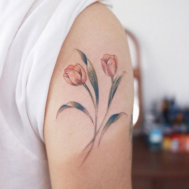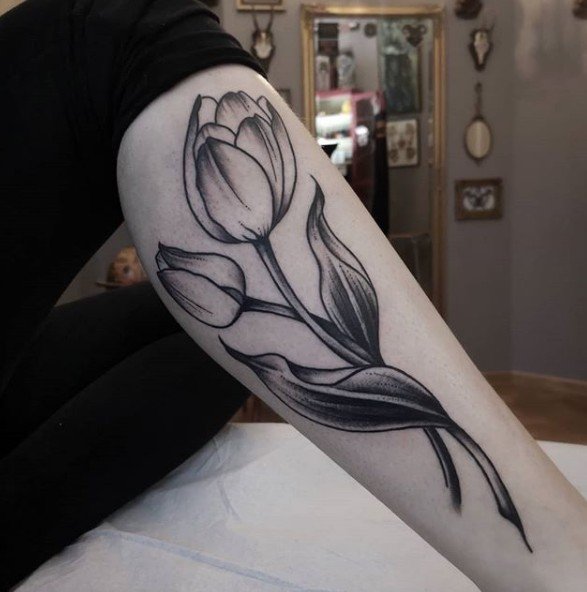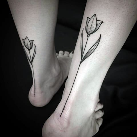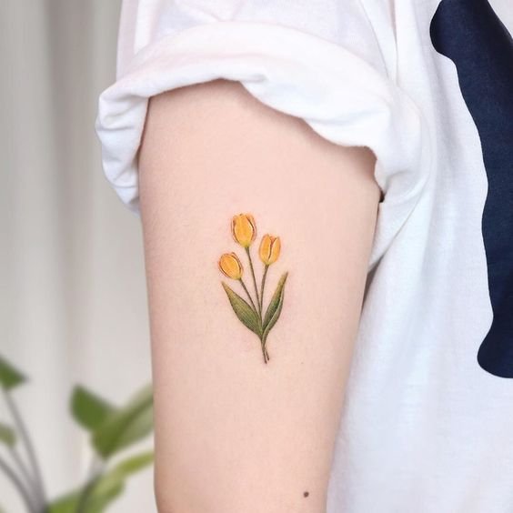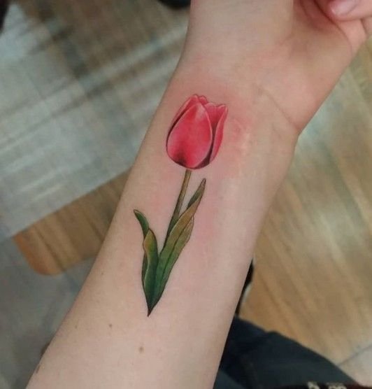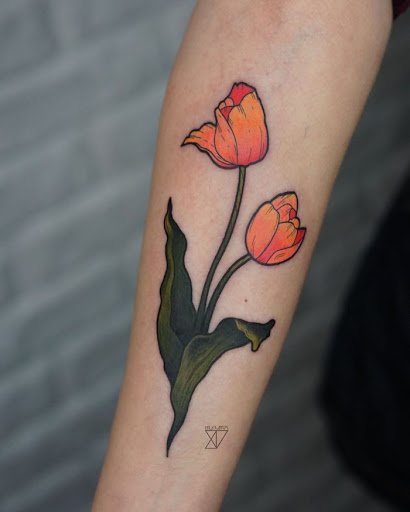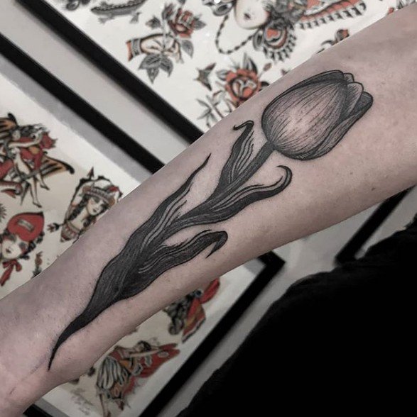 Für eine Tätowierung wählen sie meist rote und gelbe Tulpen, seltener ist die Blume weiß. Übrigens beeinflusst die Farbe der Tulpe auch die Bezeichnung der Tätowierung.