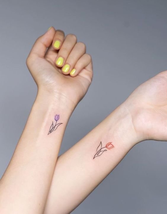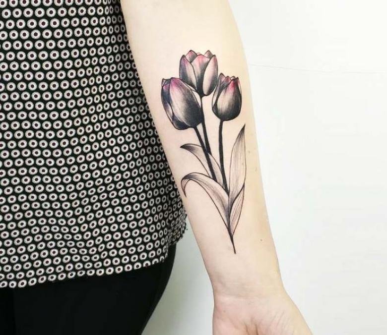 Das Tulpen-Tattoo kann auch mit verschiedenen Elementen, wie Aufschriften, Bändern, Vögeln, Schmetterlingen und anderen Elementen, ergänzt werden. Orte für Tätowierungen können ganz unterschiedlich sein, je nach den Wünschen des Kunden.