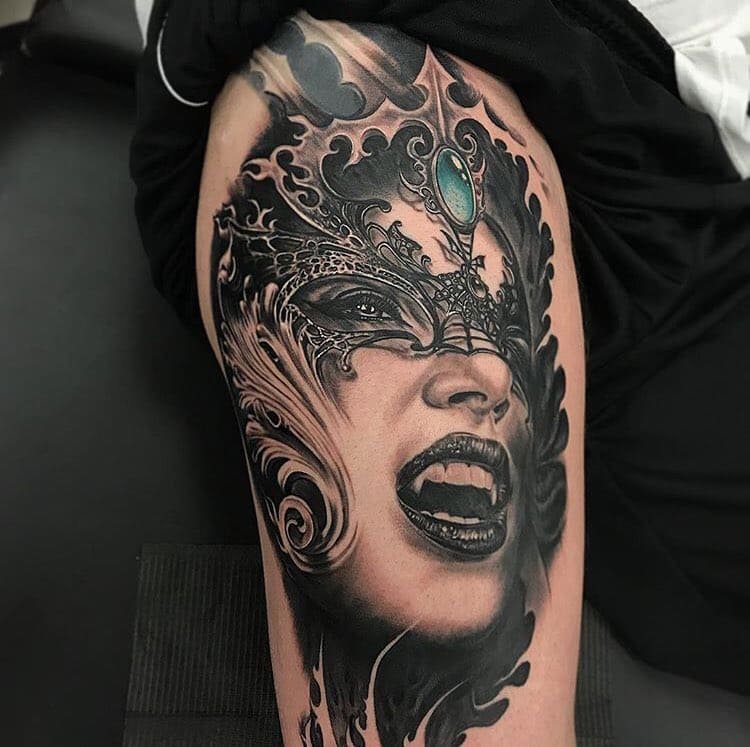 Auf der anderen Seite steht das Vampir-Tattoo für Kreativität, Ideenreichtum und Fantasie. In der Legende sind Vampire unsterblich und haben viel Zeit, Wissen zu sammeln und es in neue Talente umzuwandeln. Sie sind Meister im Fließen zwischen Menschenmassen und üben dabei unauffällig und ungestraft Kontrolle aus.