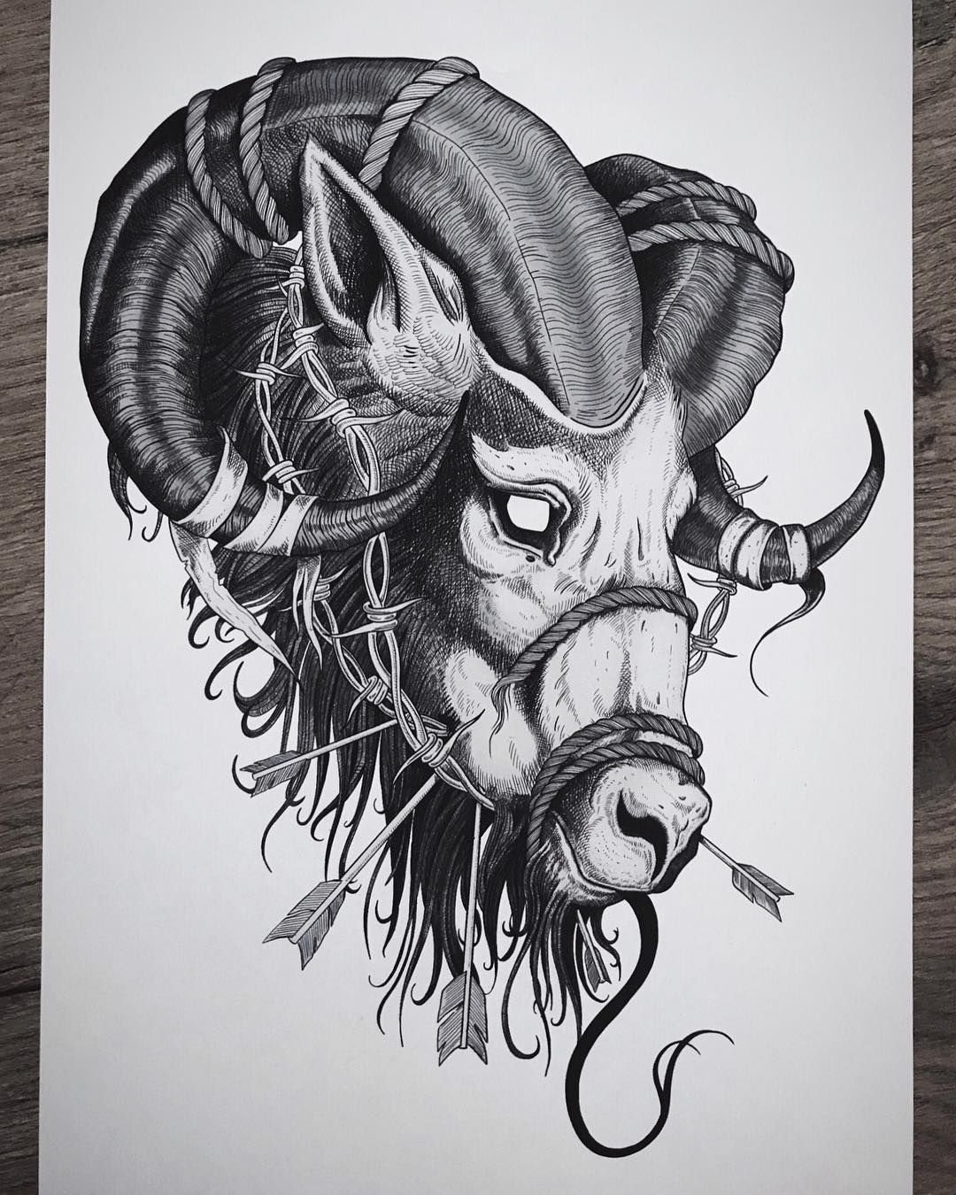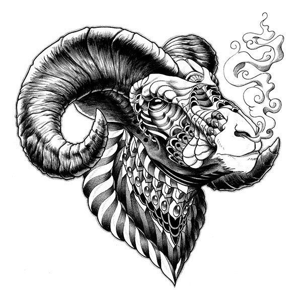 Tattoo mit dem Abbild eines Widders hat nicht nur einen Wert, sondern mehrere seiner Varianten.