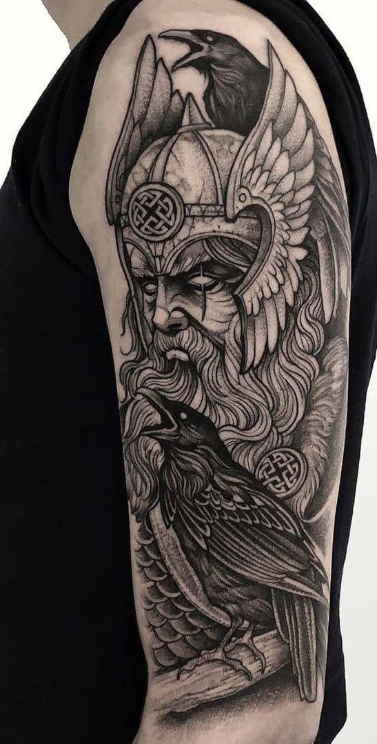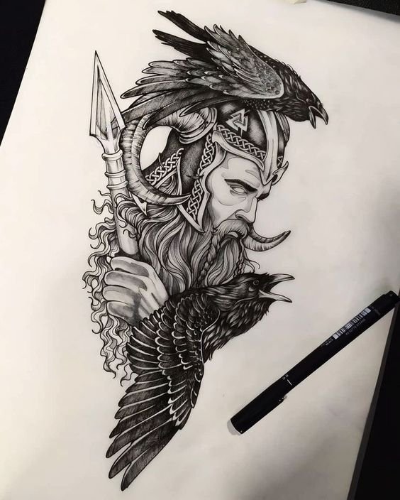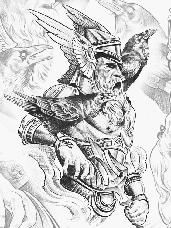 - Die Krähen des Odin. Als geflügelte Helfer des obersten Gottes fliegen sie um die Welt, um mit Nachrichten zu ihrem Herrn zurückzukehren. Ihr Bild wird benutzt, um Weisheit zu erlangen.