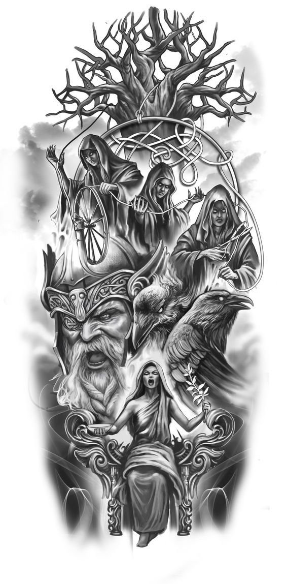 - Der Baum des Lebens. Eine Tattoo in Form eines riesigen Baumes mit ausladender Krone als Bindeglied zwischen den Welten der Wikinger. Dieses Symbol soll dem Träger ein langes Leben garantieren. Nach dem Tod soll es ihm einen leichten Übergang in die Geisterwelt ermöglichen.