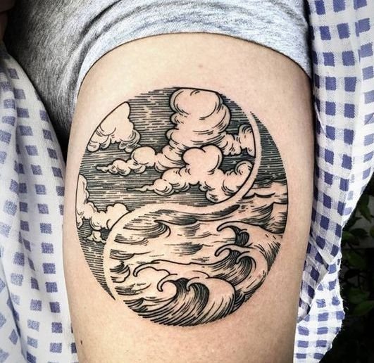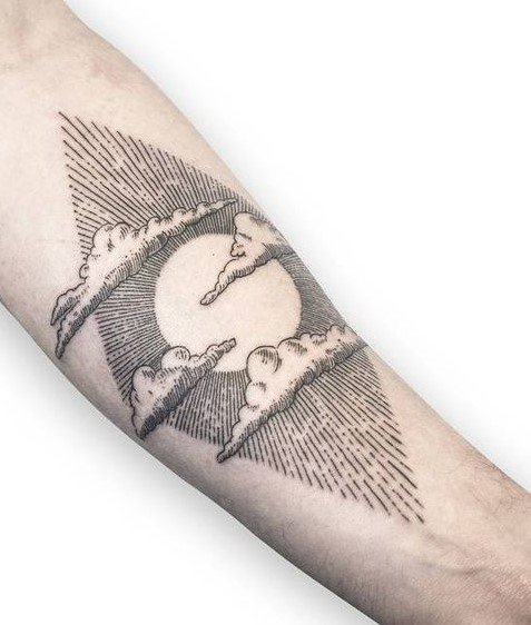 Tattoo-Skizzen Wolken ziehen die Menschen mit ihrer Anmut und ästhetischen Schönheit an. Sie sind anmutig, strahlen eine bezaubernde magnetische Kraft aus und ziehen unweigerlich die Blicke der Menschen auf sich. Solche Tattoos werden in der Regel in grauen, dunklen Farben ausgeführt, da diese Farbtöne der natürlichen Farbe einer echten Wolke so nahe wie möglich kommen. Aber im Bereich der Tätowierung sind keine Grenzen gesetzt, sodass Wolken in jeder bevorzugten Farbe dargestellt werden können.