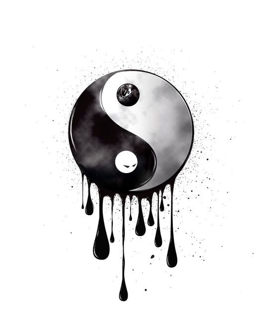 Die Form des Tropfens, in der die beiden Seiten erscheinen, ist die Bezeichnung vom Wasser. Und ohne Wasser kann alles Lebendige nicht existieren. Punkte, die sich in der Mitte jedes Tropfens befinden, besagen, dass es nichts Perfektes gibt. Es gibt keine vollkommene Güte, so wie es kein absolutes Übel gibt. Jeder Tropfen hat ein Teil der Gegenseite.
