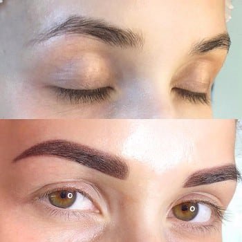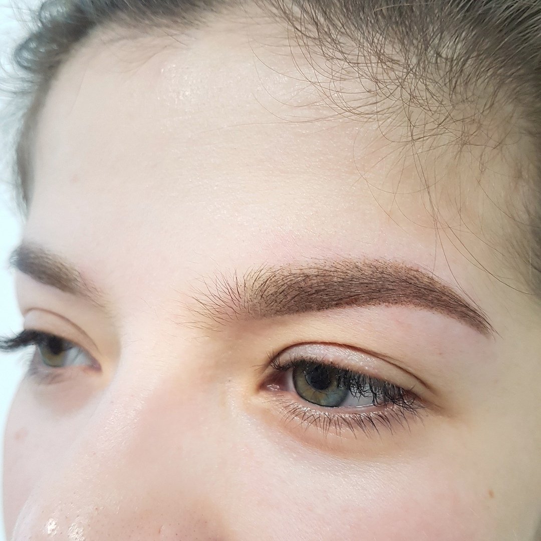 - Mit dieser Technik kann man die Form und Farbe der Augenbrauen korrigieren, vorhandene haarfreie Stellen überdecken, die Augenbrauen breiter oder dünner machen und dabei werden sie so natürlich wie möglich aussehen. Bei der Erstellung vom 3D-Tattoo von Augenbrauen werden Pigmente mit mehreren Farbtönen verwendet, die sich beim Auftragen abwechseln. Das Hauptpigment wird gleich wie Haarfarbe oder dunkler gewählt, wobei es mit dunkleren Pigmentstreifen abwechselt wird. So werden nicht nur die Haare gezeichnet, sondern auch ihre Schatten, wodurch das Volumen und die Natürlichkeit der Augenbrauen erreicht werden.