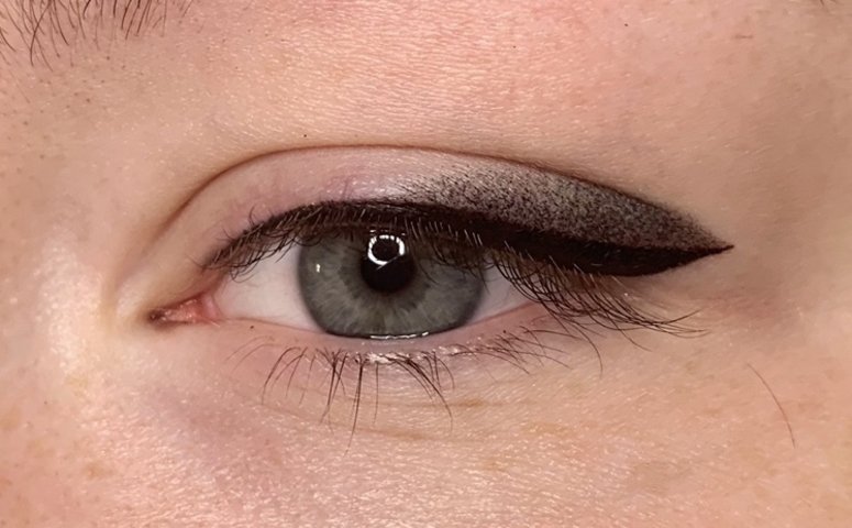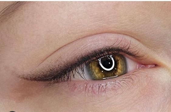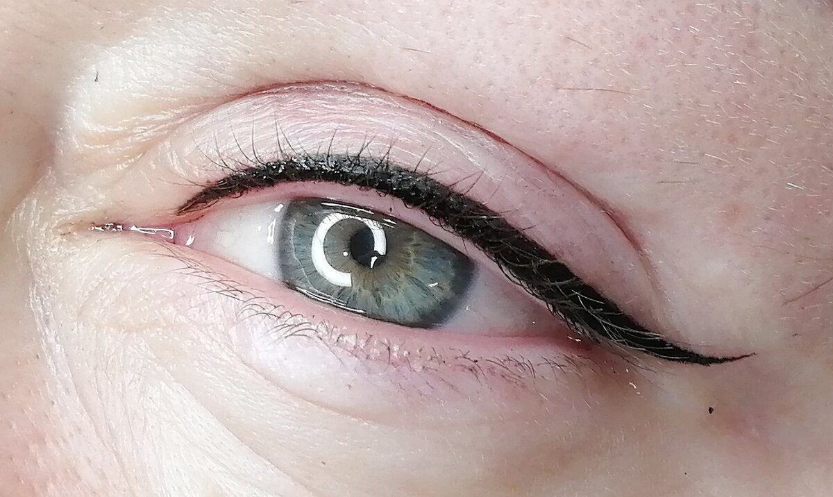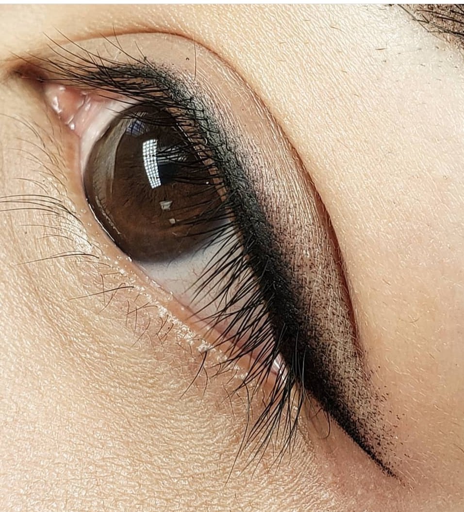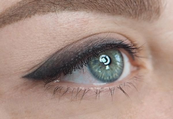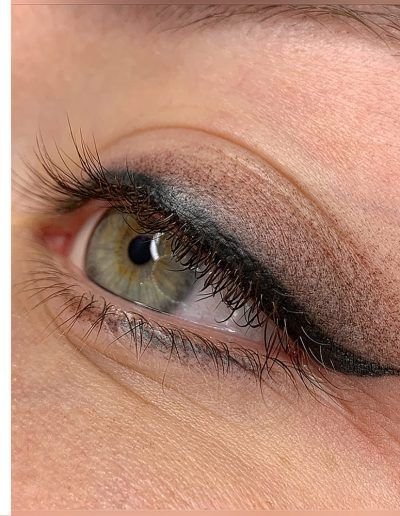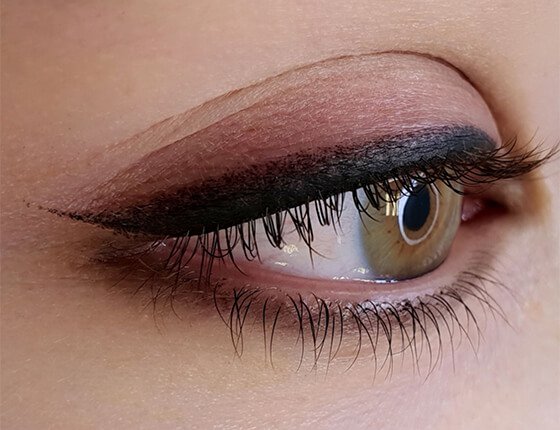 - Permanent Make-up auf dem Wimpernkranz - der Wimperkranz wird abgezeichnet, während die Linie nicht über die Augen hinaustritt.