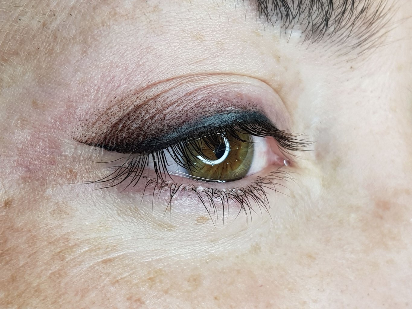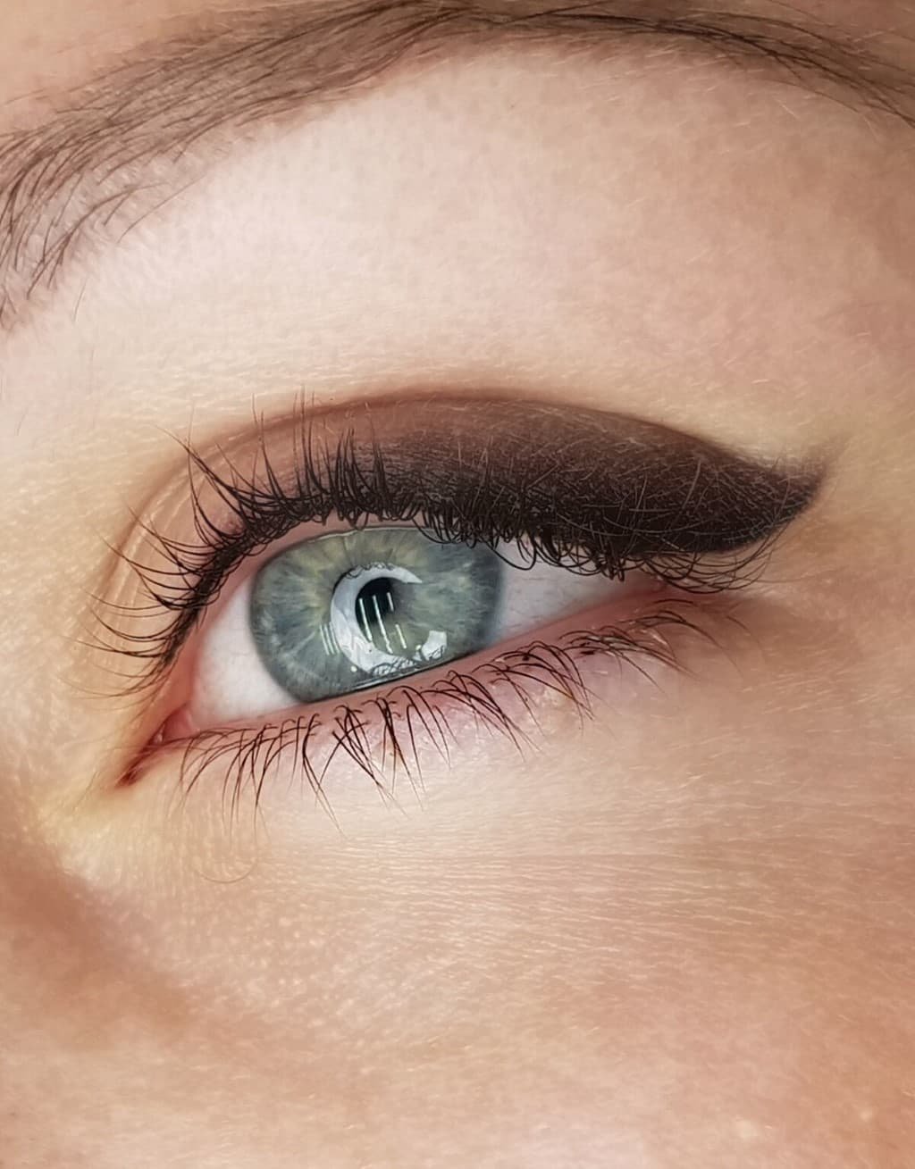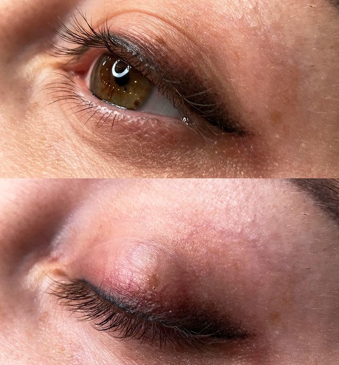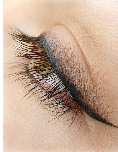 - Permanent Make-up auf dem Wimpernkranz - der Wimperkranz wird abgezeichnet, während die Linie nicht über die Augen hinaustritt.