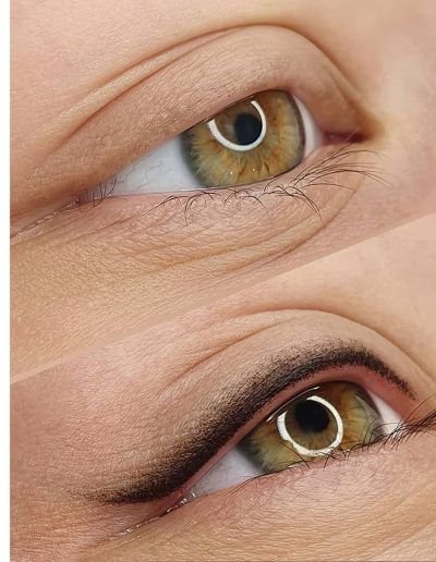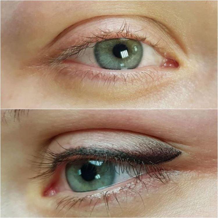 Dank dieser Dienstleistung können Sie verschiedene Augendefekte korrigieren: abgesenkte Augenwinkel, Oberlidfalte usw. Mit Permanent Make-up können Sie Augenwimpern visuell dichter, ausdrucksvoller und offener machen. Dank dieser Prozedur muss man keine Lidstriche mehr täglich mit Kosmetika auftragen, die sich unter dem Einfluss erhöhter Feuchtigkeit beeinträchtigt werden oder verfließen können.