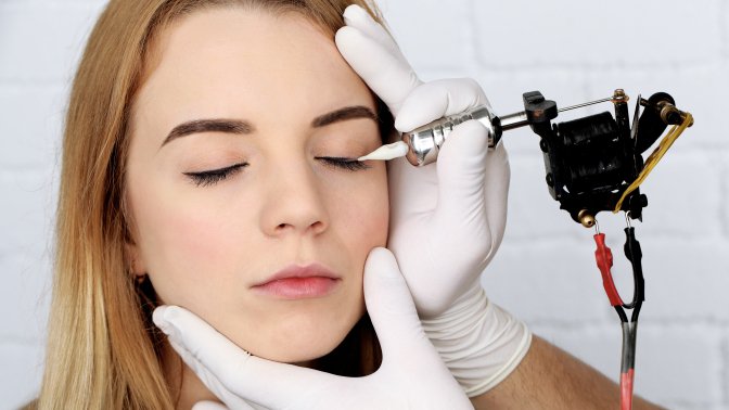 Das Pigment wird nur unter Anästhesie auf die Haut der Augenlider aufgetragen.