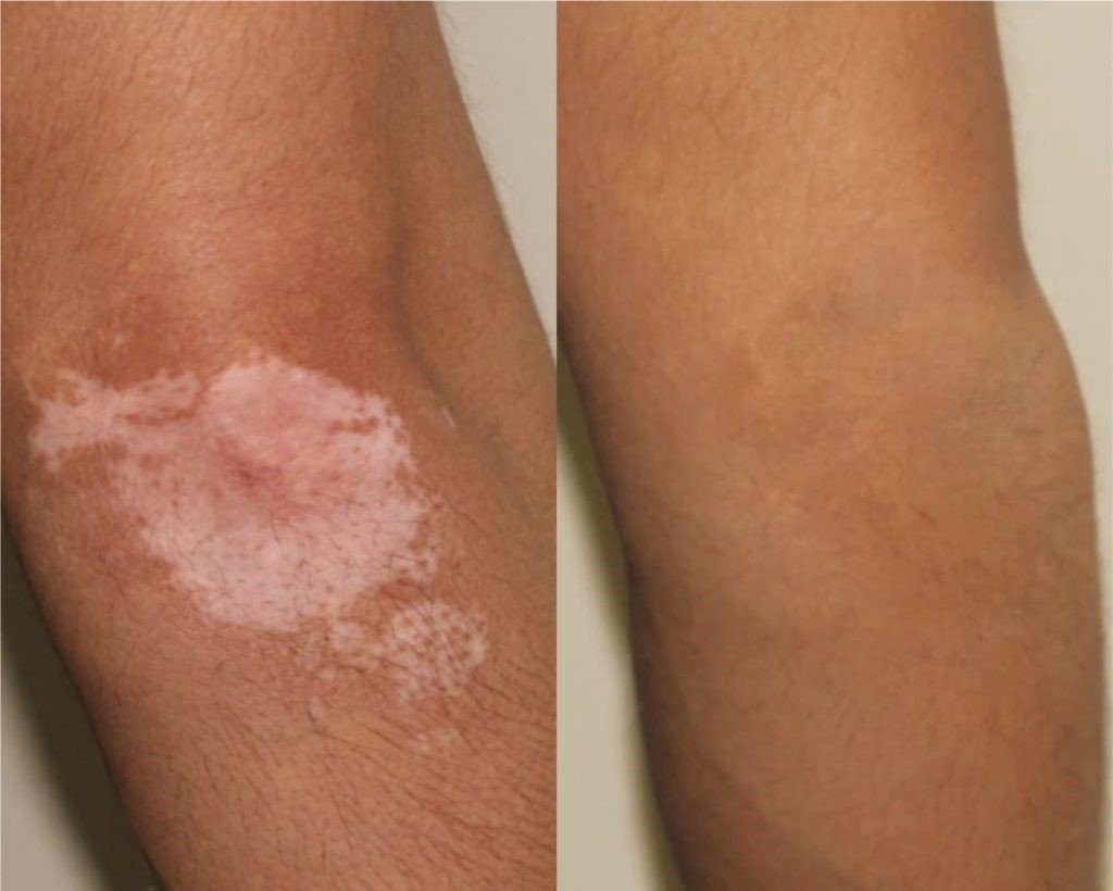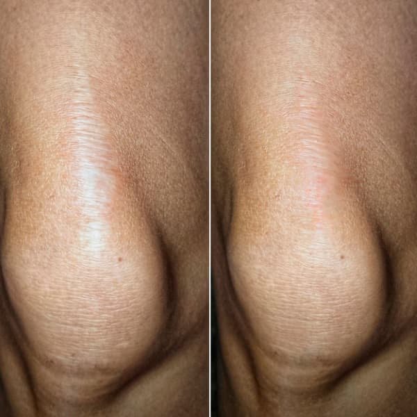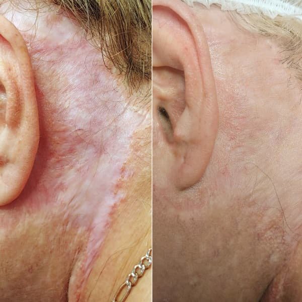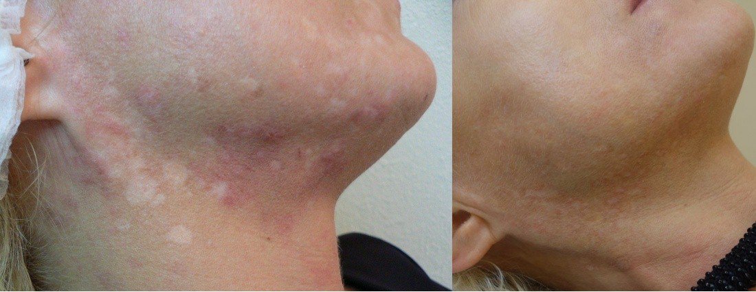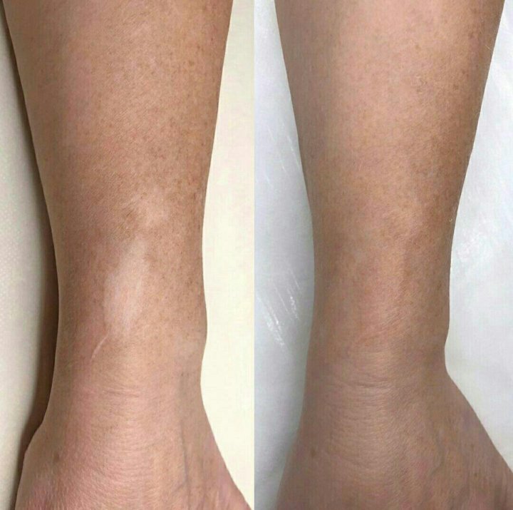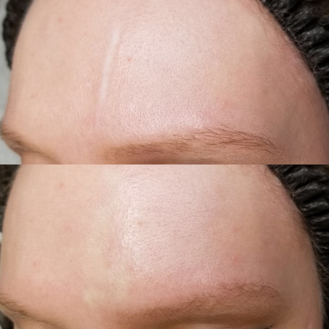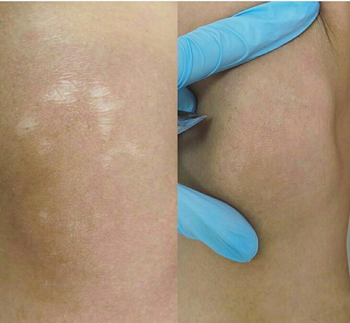 Oft wird eine solche Überdeckung nach Kollagenstimulation durchgeführt. In diesem Fall wird die raue Haut zuerst bearbeitet, und danach wird der Bereich mit einem Pigment für den natürlichen Hautton überdeckt. Das Pigment wird so natürlich wie möglich ausgewählt, im Endergebnis ist eine Narbe oder eine Brandverletzung sehr schwer zu bemerken.