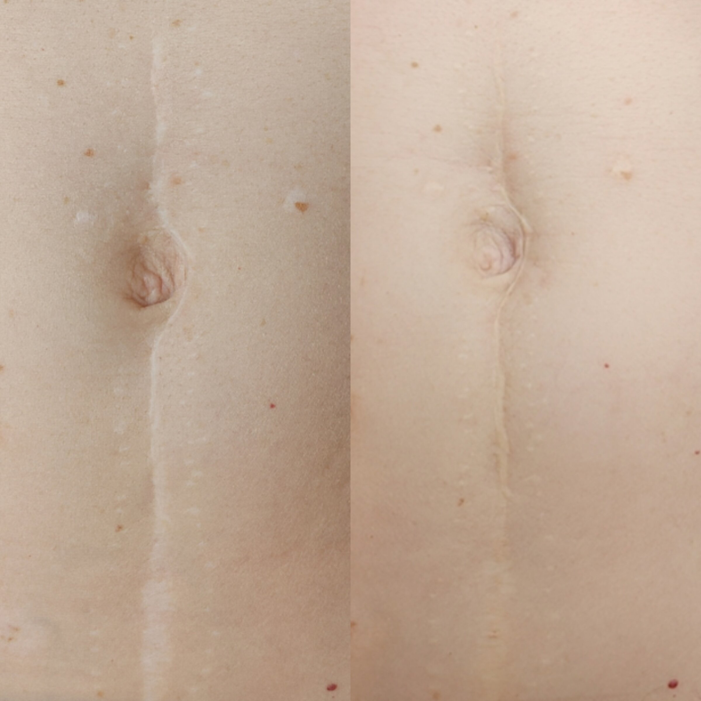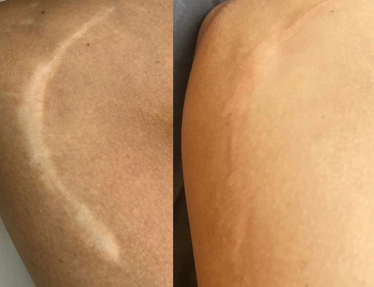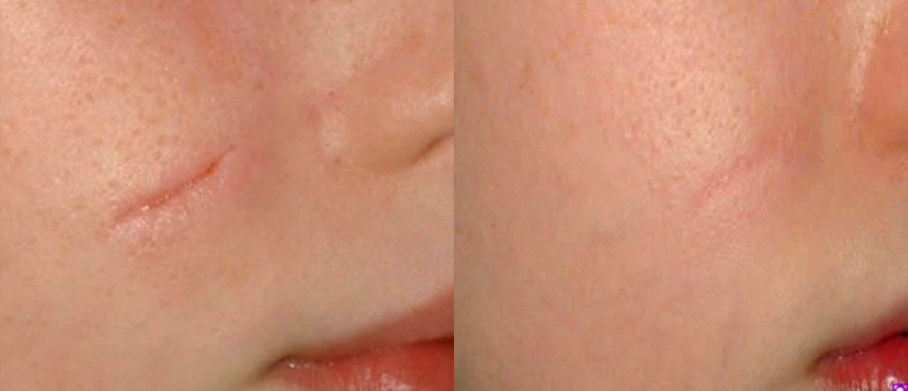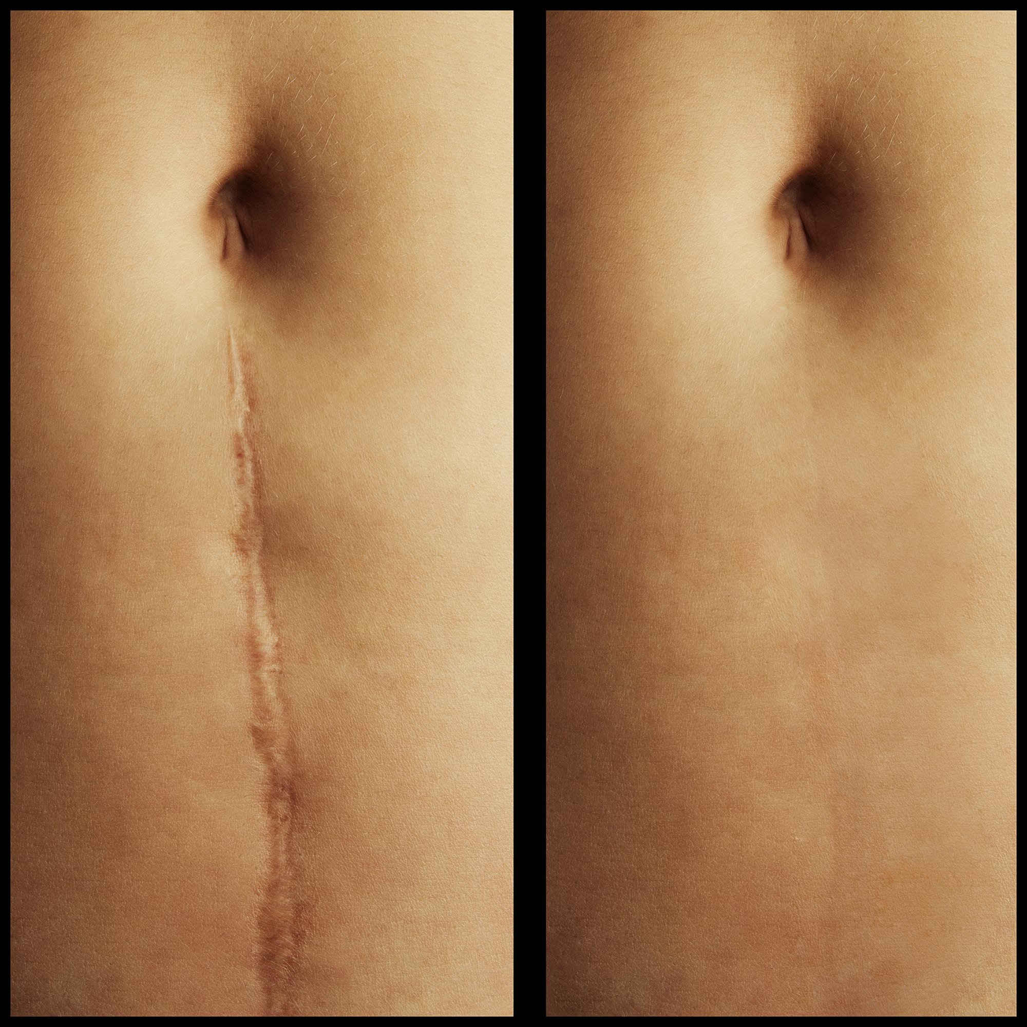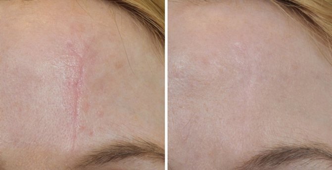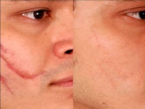 Ebenso wird die Prozedur einfach mit der Überdeckung von natürlichen Narben (Spur nach Vereiterung oder anderen natürlichen Eingriffen in den Hautgeweben) gerecht.